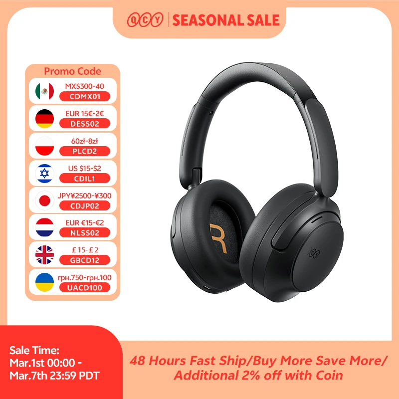 β‘Quick viewQCY H3S -56dB Adaptive ANC Over Ear Headphone Hi-Res LDAC Spatial Sound Wireless Earphone Bluetooth 6.0 Dual Driver 102H Headset31.52 GBPGBP 108.46Hotβ β β β β β 4.8