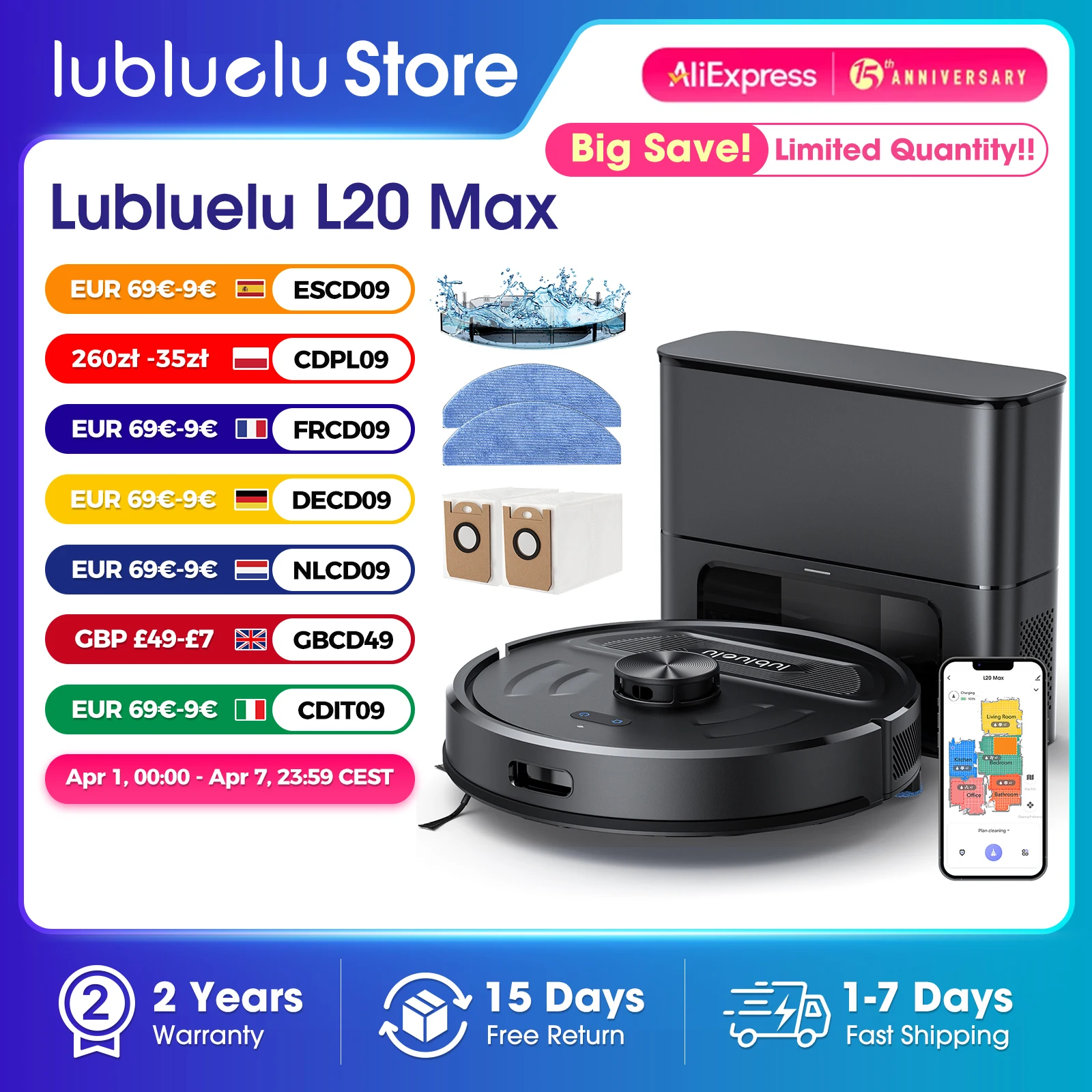 β‘Quick viewLubluelu L20Max Self-Emptying 3-in-1 Robot Vacuum Mop - 6000Pa Suction LiDAR Navigation Large Dust Bag Hands-Free 120min Runtime110.69 GBPGBP 2301.12Hotβ β β β β 4.5