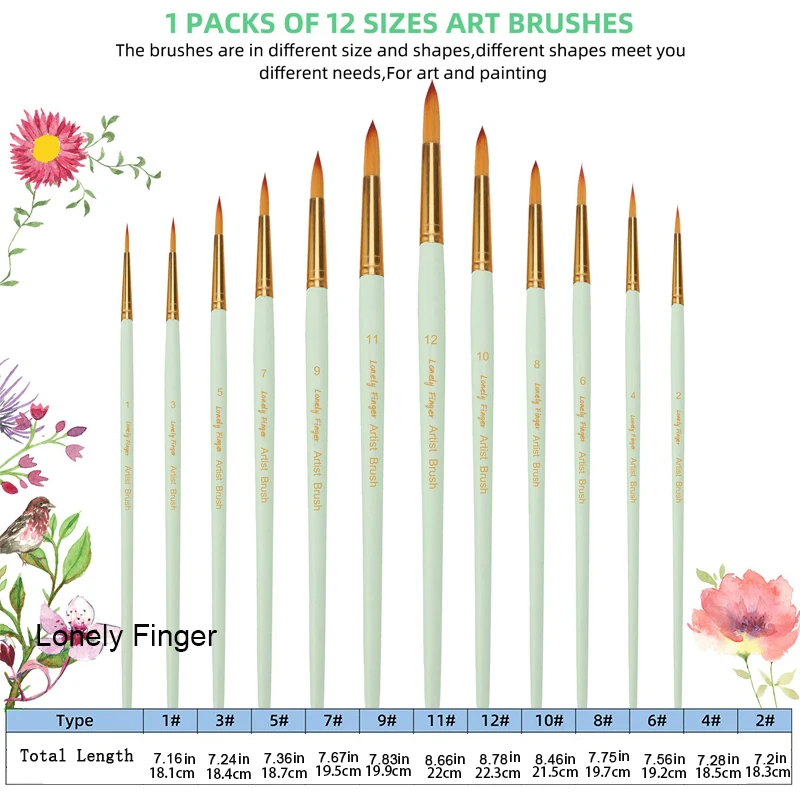 ↑12Pcs Artist Paint Brushes Set Different Size Round Pointed Tip Nylon Hair Paintbrushes for Acrylic Watercolor Oil Body Painting - TopDealBox