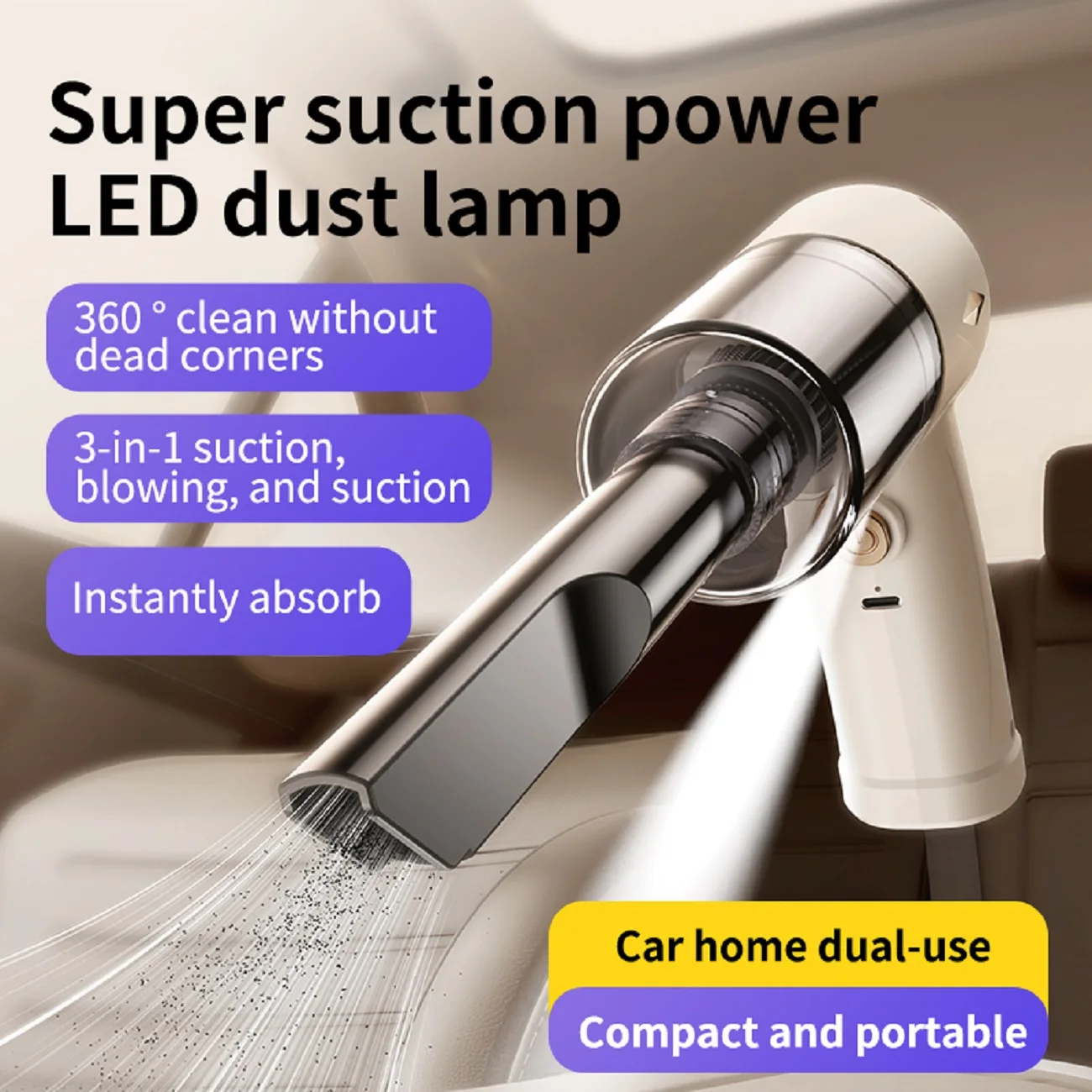 ↑1pc Powerful 4000Pa Handheld Vacuum Cleaner - Portable, Lightweight, and Cordless Design for Efficient Cleaning of Cars, Homes - TopDealBox