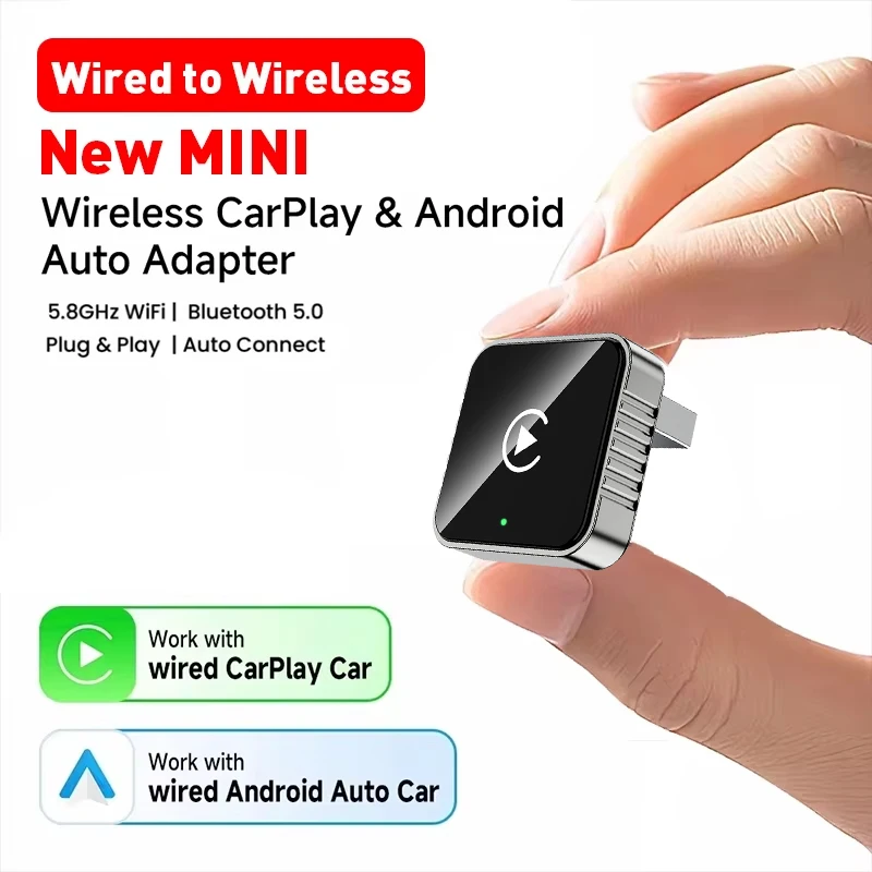 ↑New 2in1 Wired to Wireless CarPlay Adapter, Android Auto Dongle, High-Quality Car Accessory Smart Box 5GHz WiFi Type-C/USB - TopDealBox