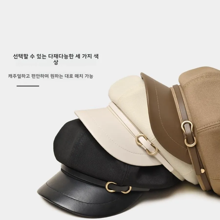 ↑2025 New Sle Octagonal Beret Hat Women Spring Autumn Face Slimming Korean Sle Newsboy Hat Retro Leather Duckbill Painter Hat - TopDealBox