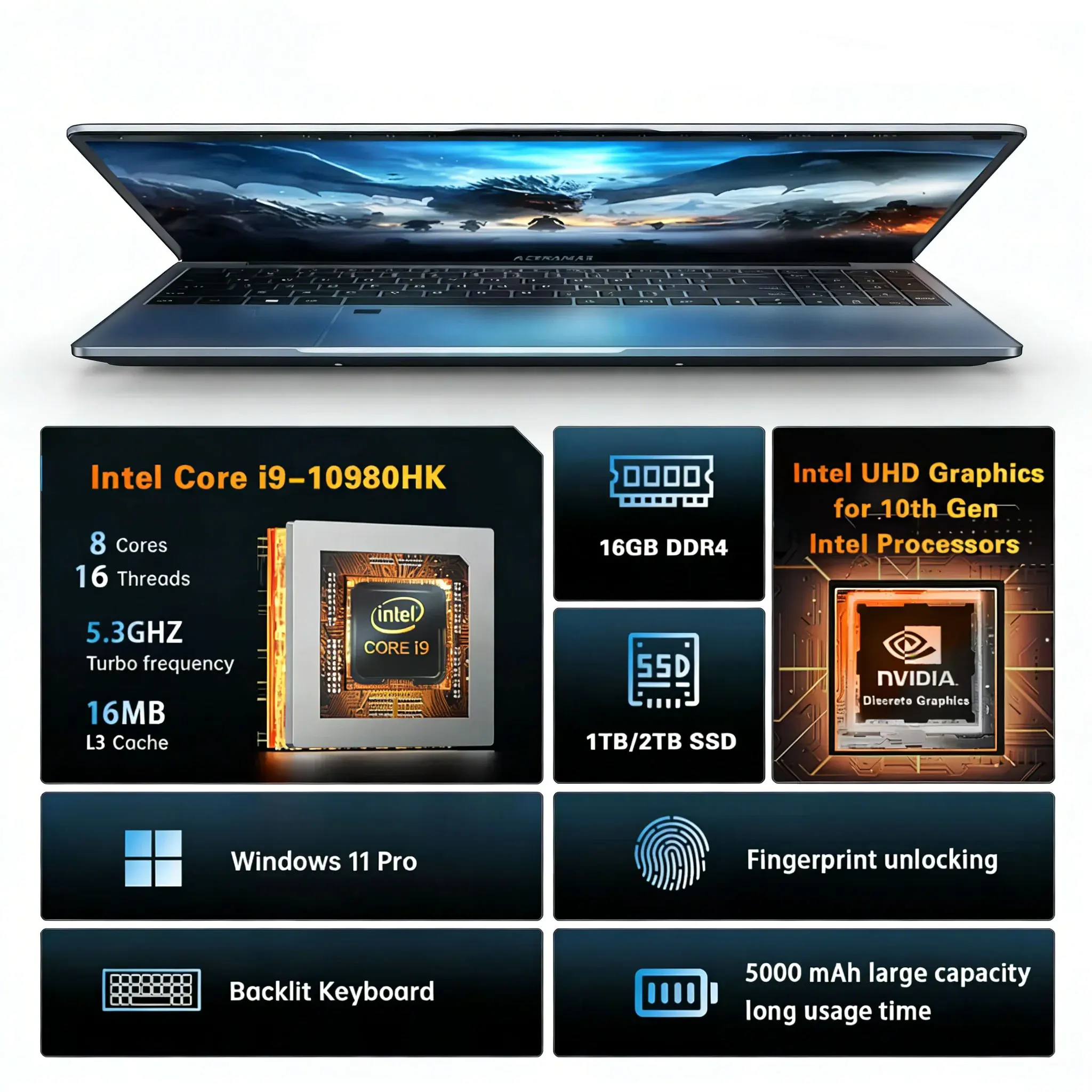 β‘Quick viewCore i9-10980HK Laptop 16GB RAM 1TB/2TB SSD Backlit Keyboard Fingerprint Unlocking Function Gaming and Business Dual Use Laptop317.19 GBPGBP 4345.32Hot