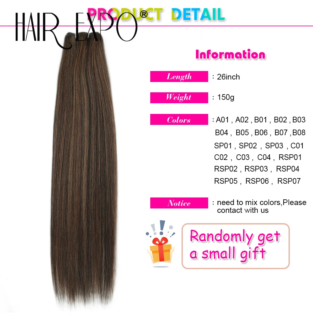 ↑26" Bio Straight Hair Bundles Natural Soft Heat Resistant Fiber Synthetic Fiber Hair Extensions Protein Straight Hair Weave - TopDealBox