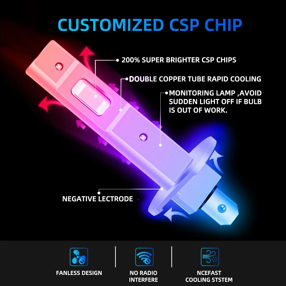 ↑2pcs 12000LM H1 LED Headlight Bulbs 3570 CSP Chips White Super Bright For Car Headlight Fog Light Universal Fanless - TopDealBox