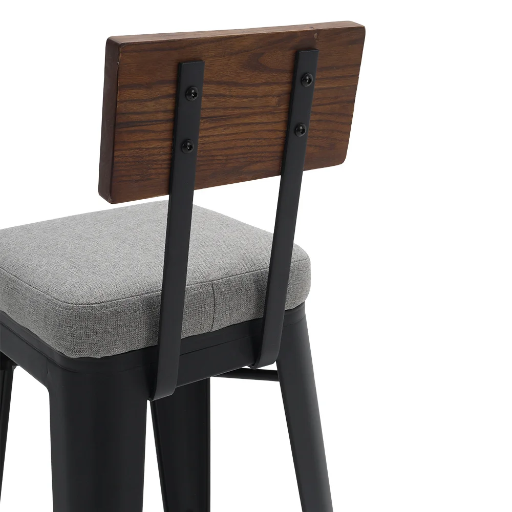↑2Pcs Metal Breakfast Bar Stools with Cushions and Backrest,Grey - TopDealBox