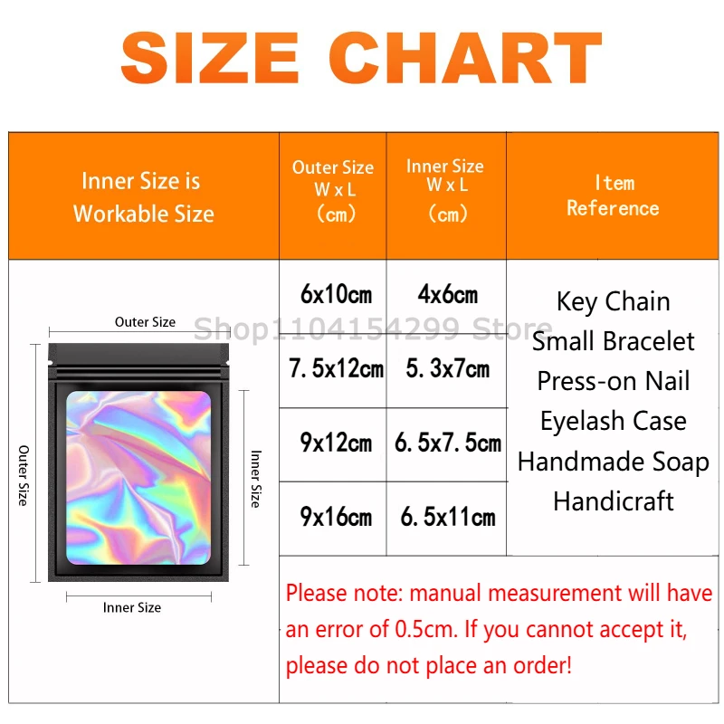 ↑50-500Pcs Holographic Ziplock Bags Plastic Laser Iridescent Zip Bags for Manicure Eyelash Display Earrings Ring Storage Bag - TopDealBox