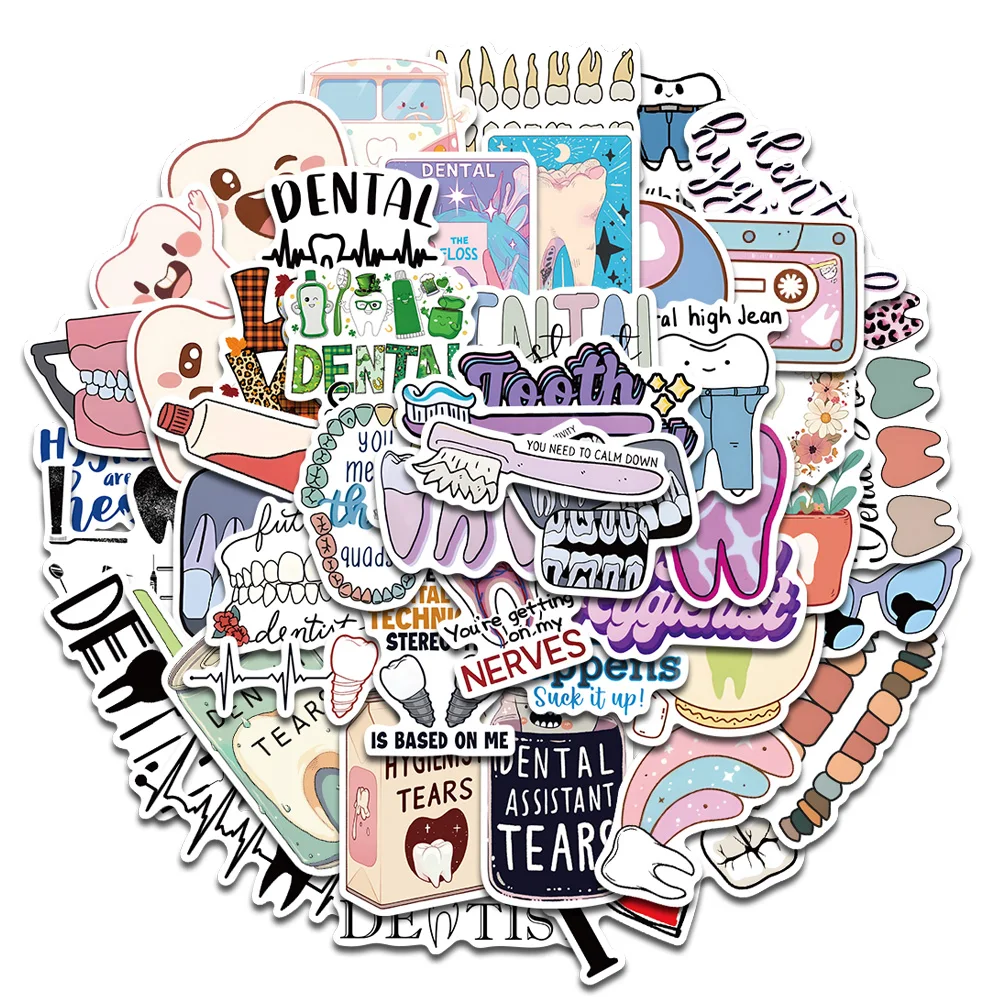 ↑50PCS Dental Stickers Dentist Scrapbook Graffiti Laptop DIY Dentist Store Health Luggage Cartoon Graffiti Exquisite Stickers - TopDealBox