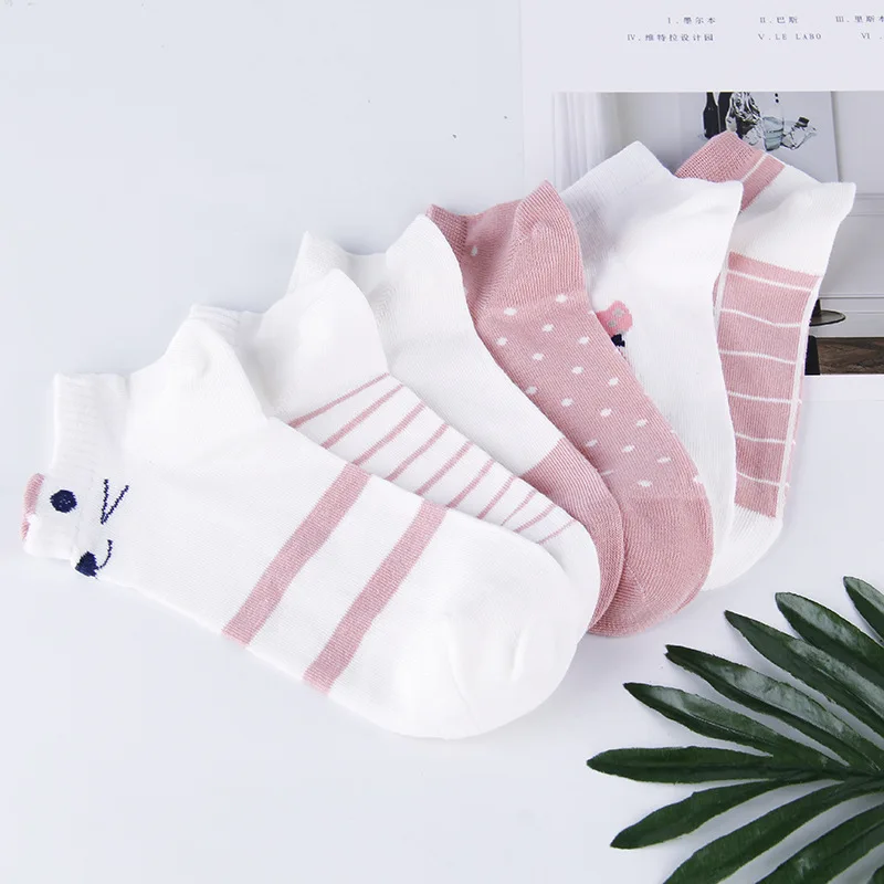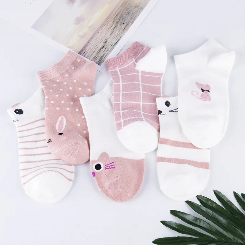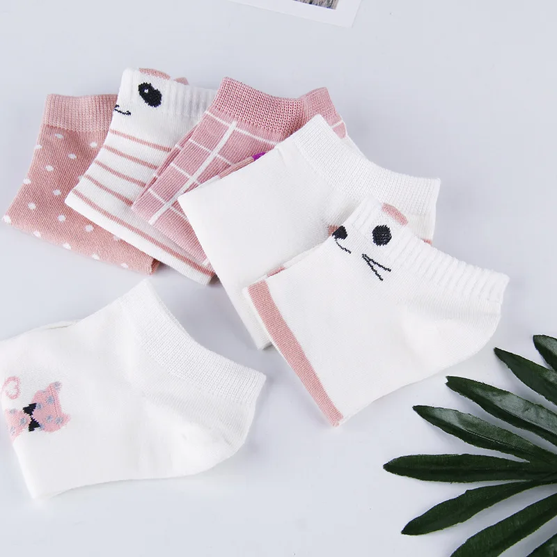 ↑5 Pairs Women's Short Tube Socks Pink Cat Thin Four Seasons Cute Boat Sockslow Top Ins Trendy Funny Socks - TopDealBox