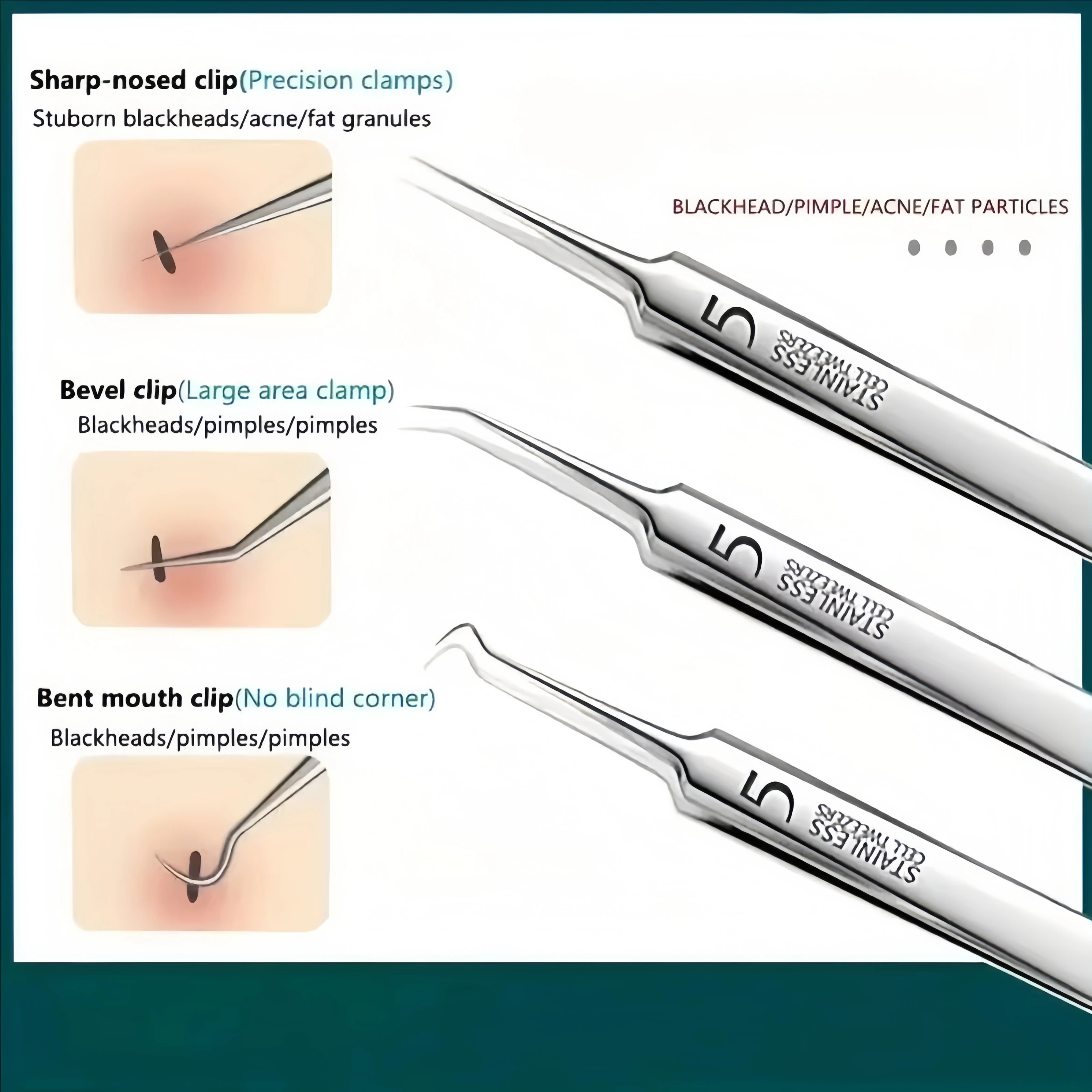 ↑8 PCS Stainless Steel Acne Clip, Cell Clip, Blackhead Clip, Acne Needle, Beauty Salon Acne Needle, Acne Needle Tool - TopDealBox