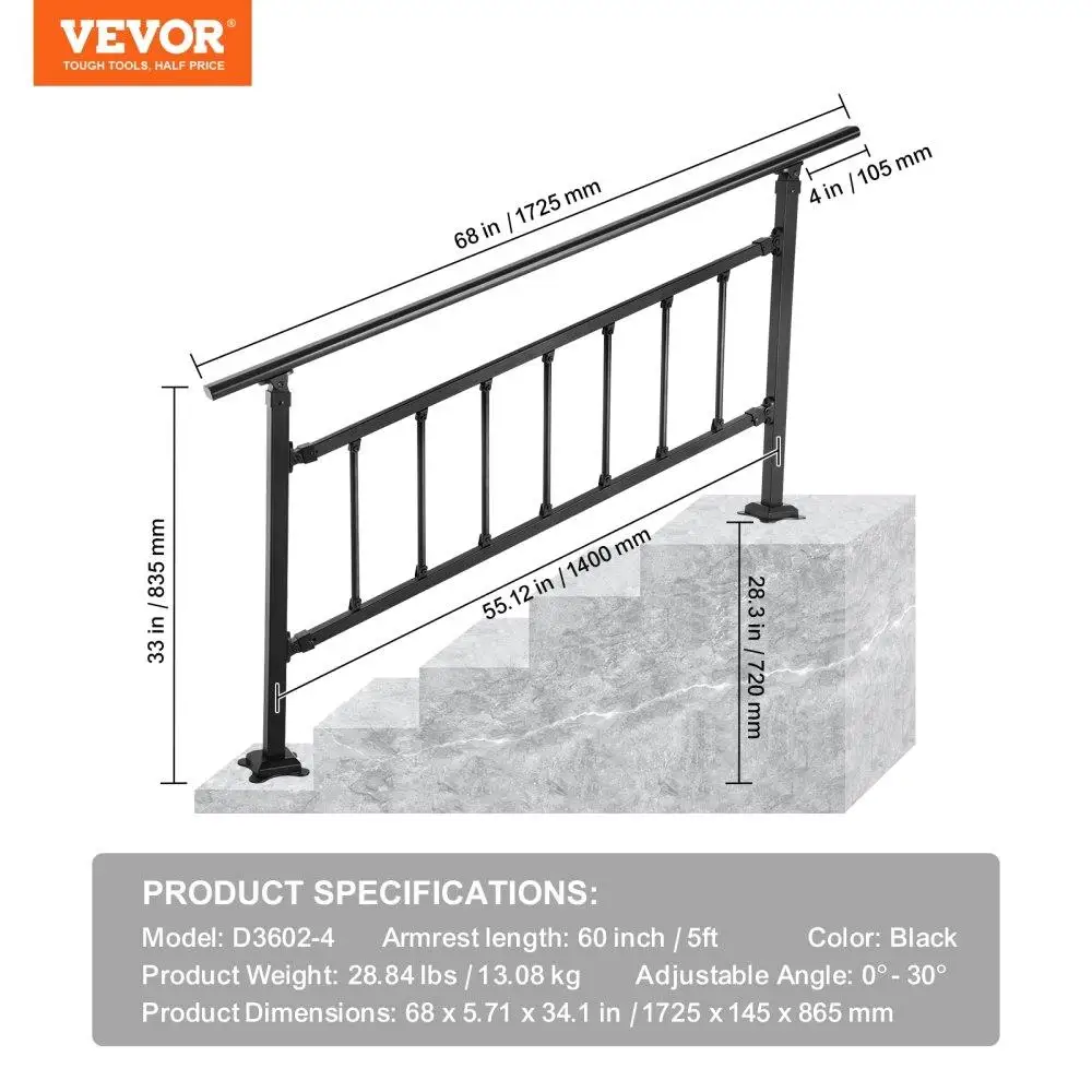 ♡Quick viewAdjustable Outdoor Stair Handrail 48x35.5 Aluminum Railing for cross Bar Stairs, 0-45 Degrees - Black Banister58.14 GBPGBP 2237.57Hot