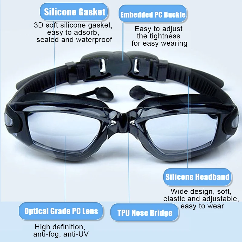↑Anti-Fog Swimming Goggles with Earplugs Adjustable Silicone Swim Eyewear For Men Women Swim Leak Proof Protection Glasses - TopDealBox