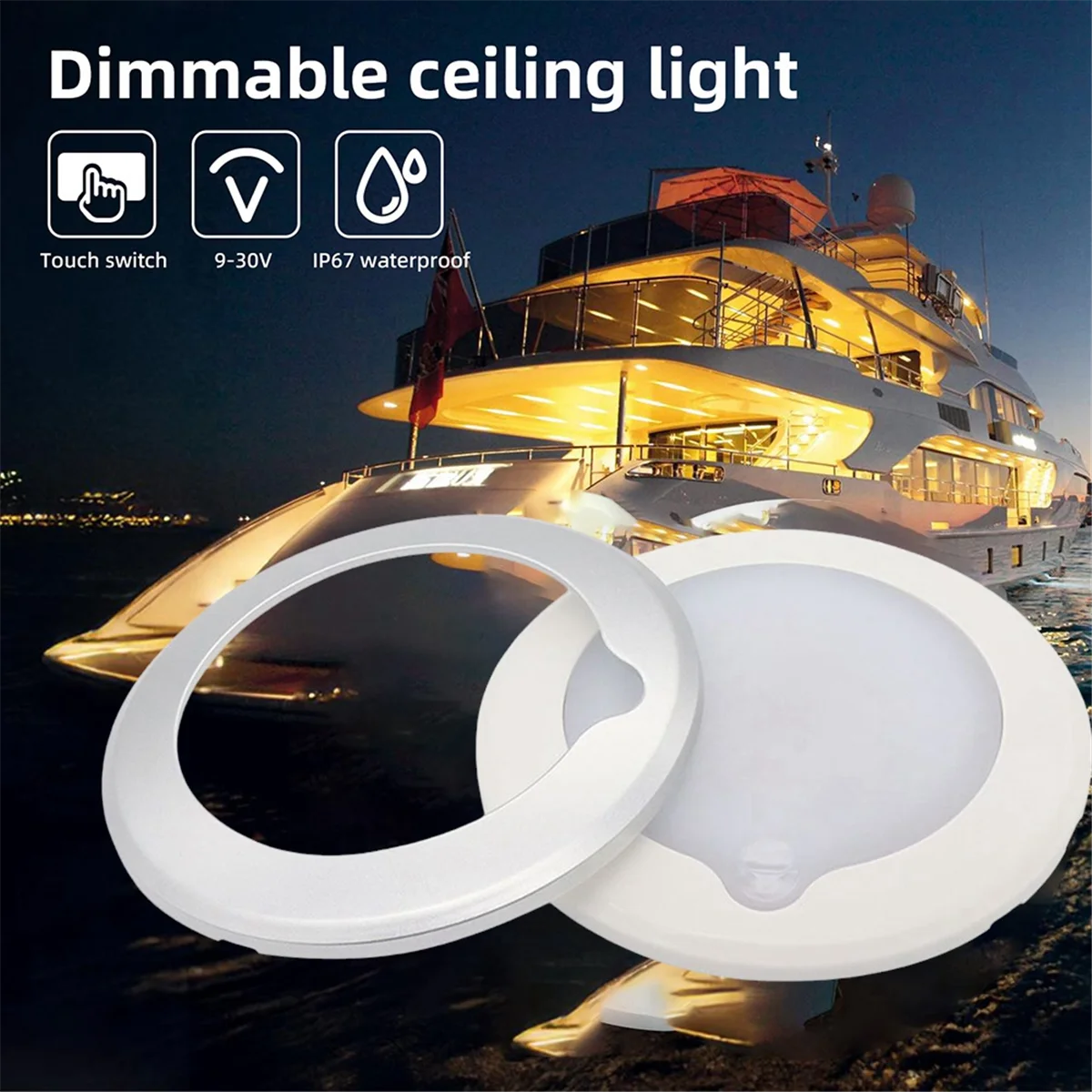 BAAU Boat Dimmable LED Ceiling Light with Touch Dimmer Switch Interior Down Lamp 9-30V Caravan Marine Interior Light - TopDealBox