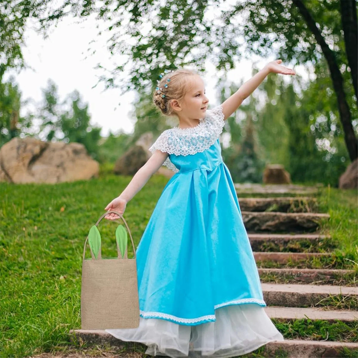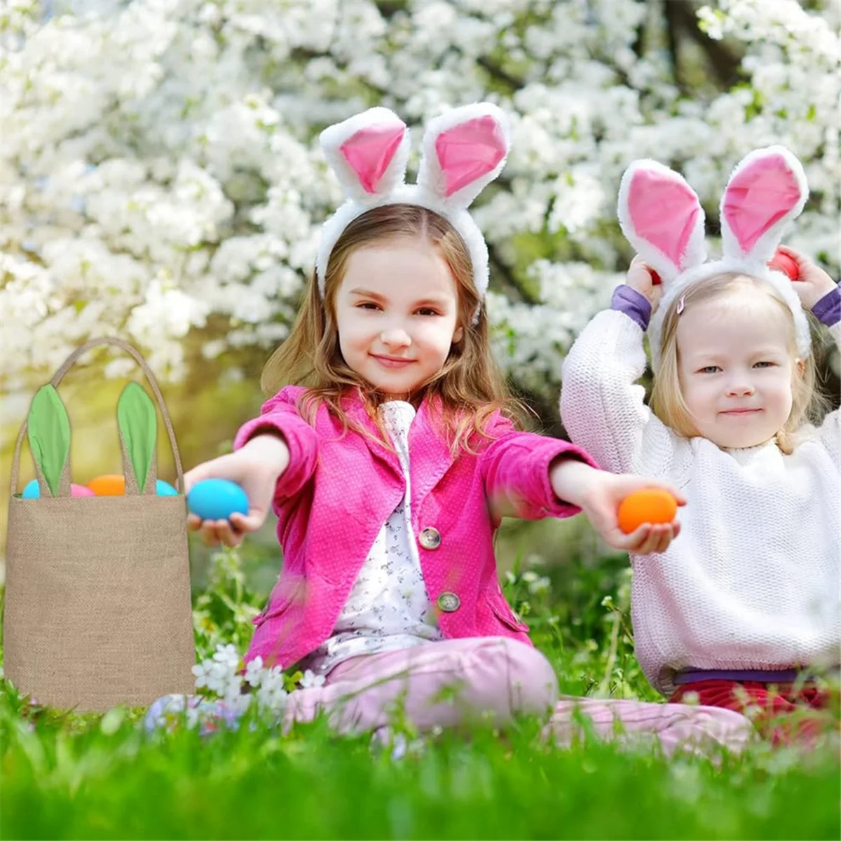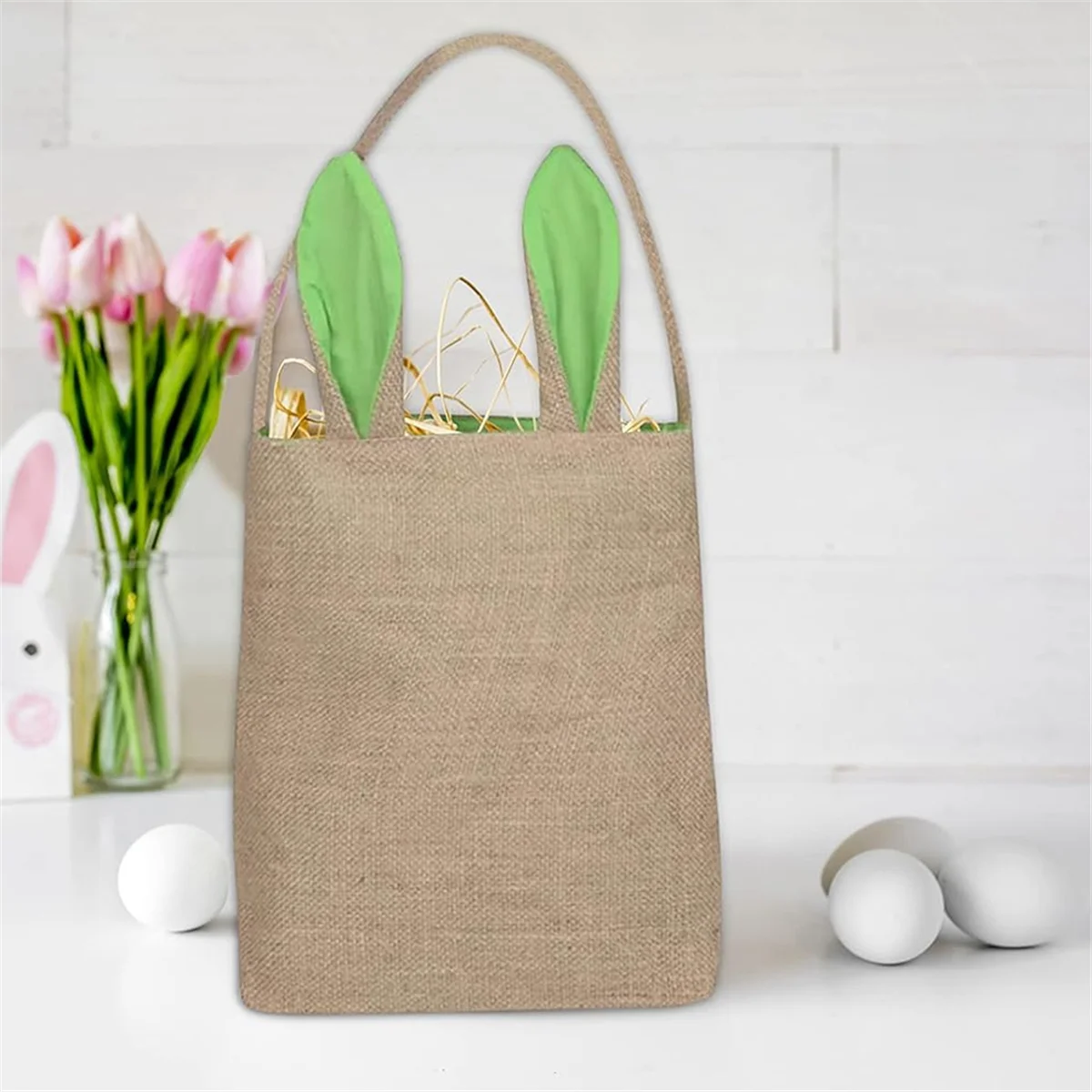 ↑BABQ Easter Basket Bag - Bunny Rabbit Ear Design - Grocery Shopping Baskets Kids Party Gift Bags Brown-Blue - TopDealBox