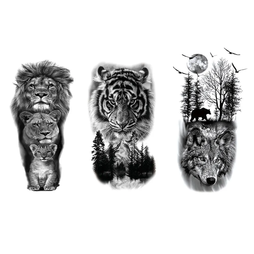 ↑Black Forest Animal Temporary Tattoos for Men Women Waterproof Tiger Wolf Lion Fake Tattoo for Hand Arm Body Decor - TopDealBox