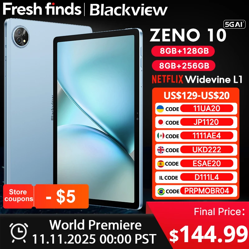 ♡Quick viewBlackview Zeno 10 5G AI Tablet 11-inch FHD+ 90Hz Display Widevine L1 UNISOC Tiger T8200 8800mAh Quad Speakers Android 15 Pad PC293.99 GBPGBP 416.29Hot★★★★★★4.8