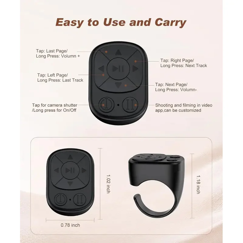 ↑Remote Control Is Suitable for iPhone iPad Bluetooth Page Turning Ring Roller Both Camera Remote Control Function Compatible - TopDealBox