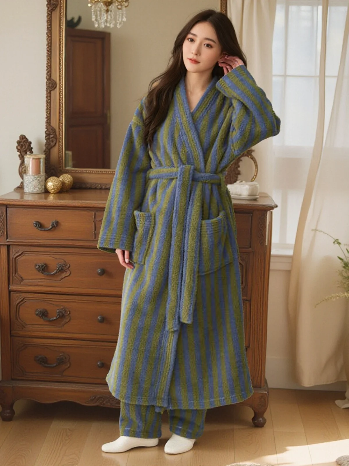 β‘Quick viewCute Coral Fleece Striped Open Cardigan Belted Loose Sleepwear Home Clothes Women's Regular Thickness Four Seasons Youth25.79 GBPGBP 31.81Hotβ β β β β 4.4