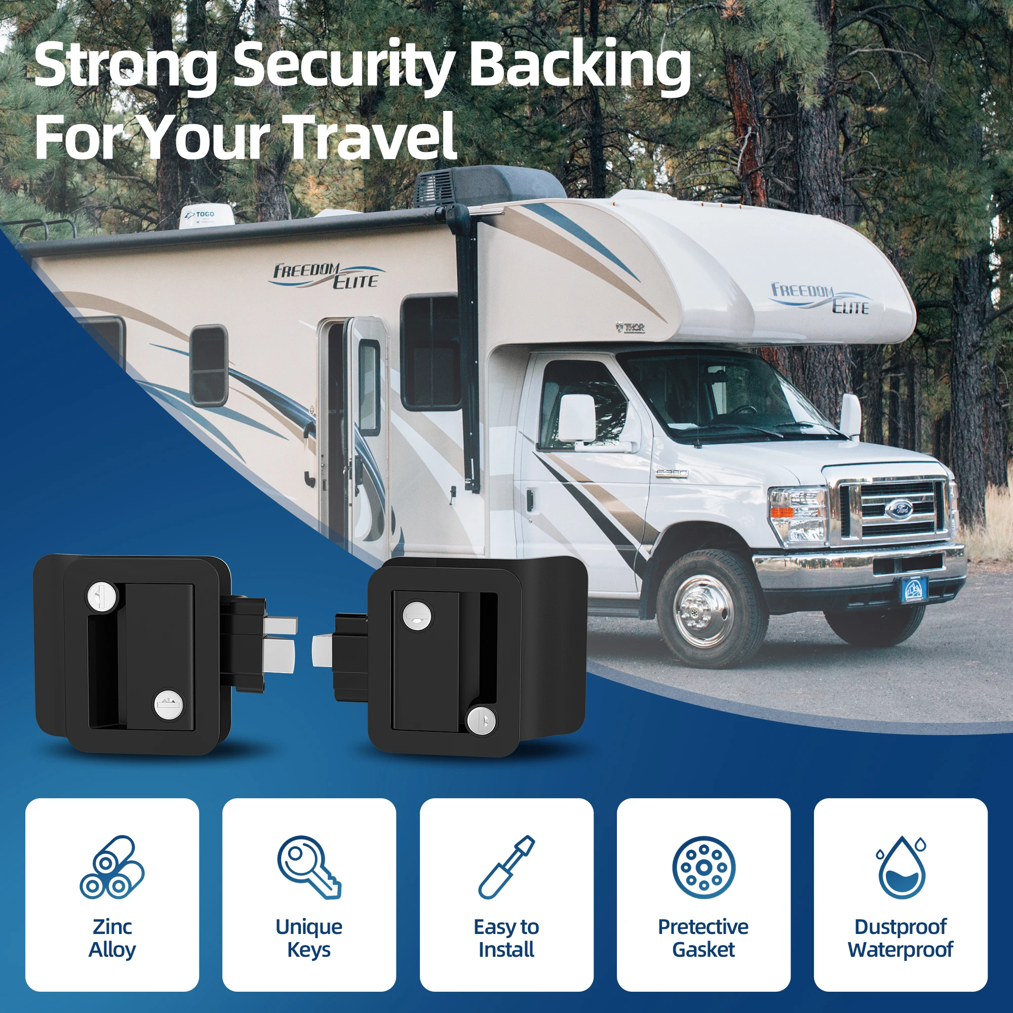 ↑DaierTek Black RV Door Lock Replacement Upgraded RV Door Latch with Paddle Deadbolt 4 Keys Camper Door Lock for Travel Trailers - TopDealBox