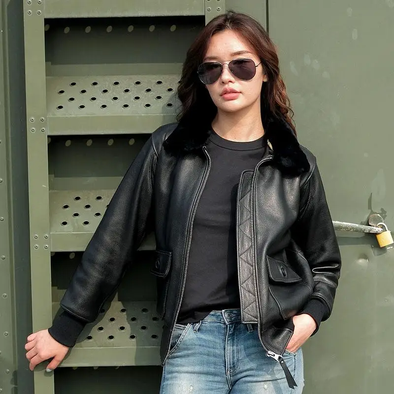 β‘Quick viewBlack Autumn G1 Pilot Leather Jacket Women Military Style Plus Size 3XL Natural Sheepskin Aviation Genuine Leather Coats140.39 GBPGBP 368.31Hotβ β β β β 5.0