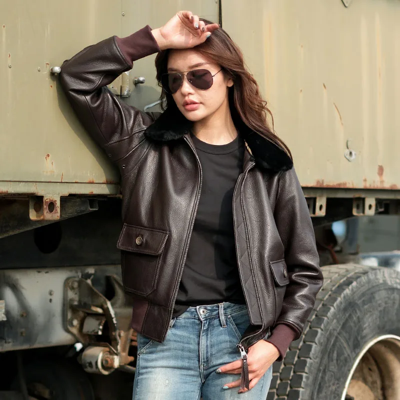 β‘Quick viewDark Brown G1 Pilot Leather Jacket Women Military Style Plus Size 3XL Genuine Natural Cowhide Wool Collar Flight Leather Coat146.19 GBPGBP 383.53Hotβ β β β β 5.0
