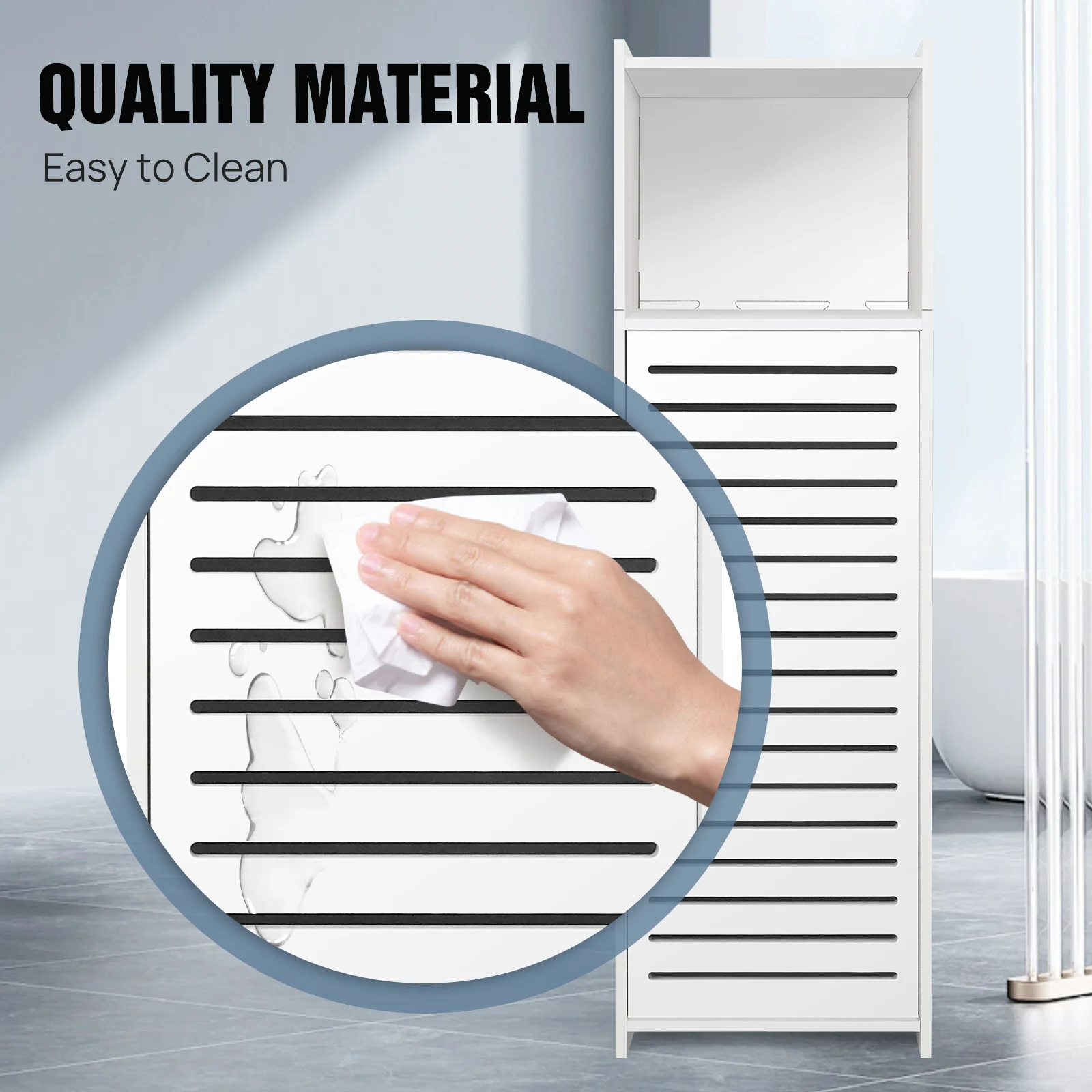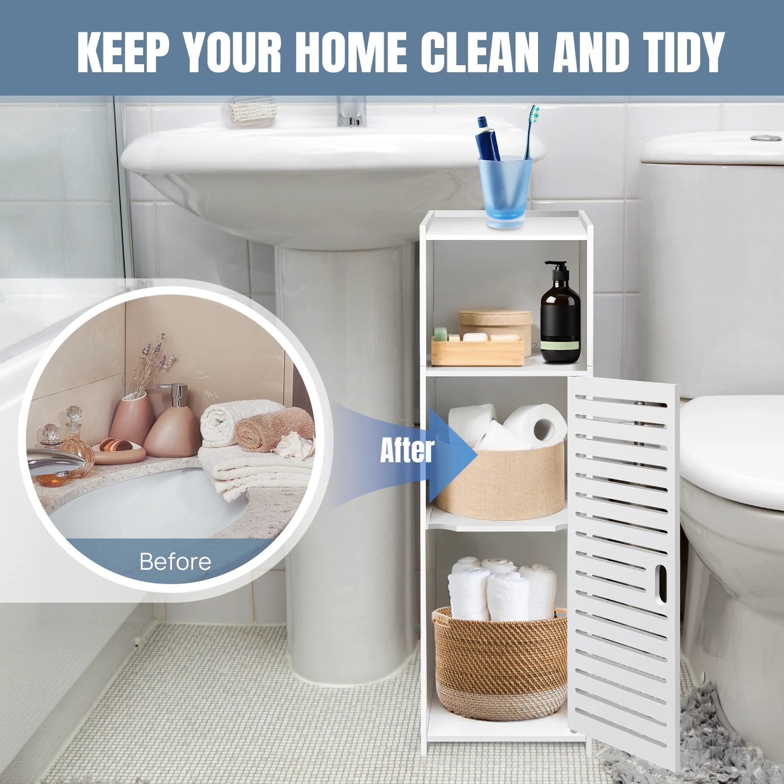 ↑DayPlus Bathroom Floor Cabinet, 3 Tier Home Storage Cabinet with Doors & Shelves, Free Standing Tall Slim Side Organizer Cabinet - TopDealBox