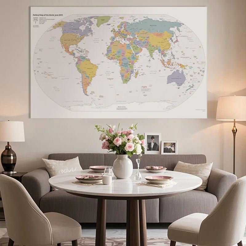 ↑English Map Series-World Map-2019,Decorative Hanging Picture Decor Frameless,Geographical,Tourism/education Tools - TopDealBox