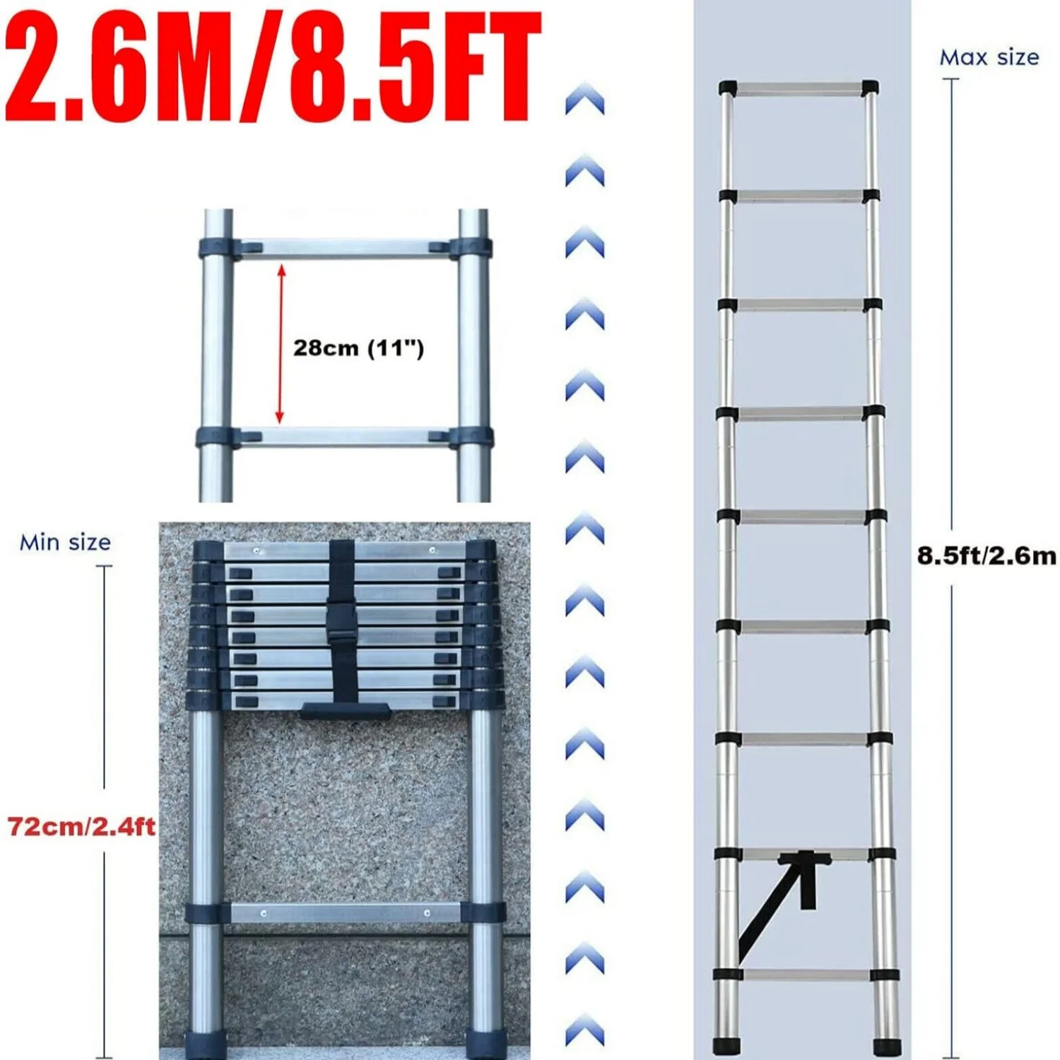 ♡Quick viewSucceBuy Telescoping Ladder 8.5/12.5ft Stainless Steel Multi-Button Retraction Collapsible Ladders 330LBS 9-Step for Home57.19 GBPGBP 219.35Hot★★★★★4.0