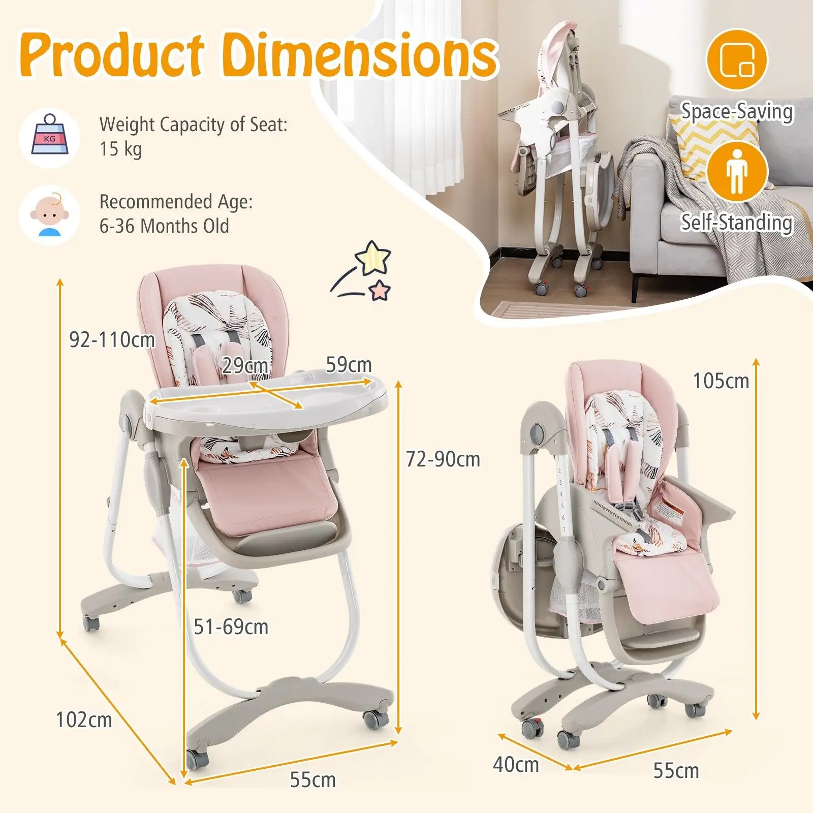 β‘Quick viewGOFLAME Folding Baby Highchair Height Adjustable Feeding Chair W/ Recline Footrest &Tray53.15 GBPGBP 93.86Hot