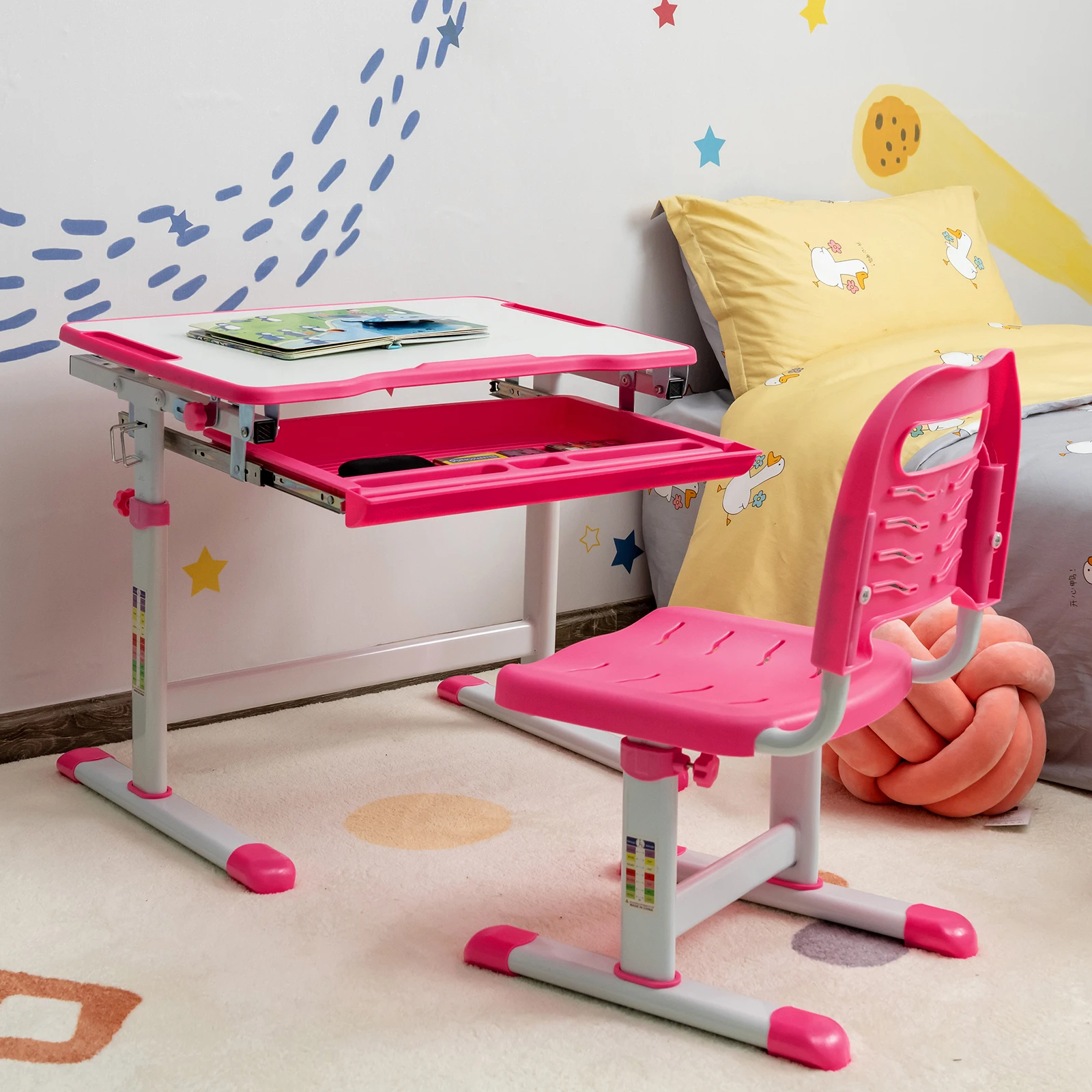 β‘Quick viewGOFLAME Kids Desk & Chair Set, Height Adjustable Study Table with Tilting Tabletop, Large Pull-out Drawer & Metal Hook44.76 GBPGBP 105.19Hot