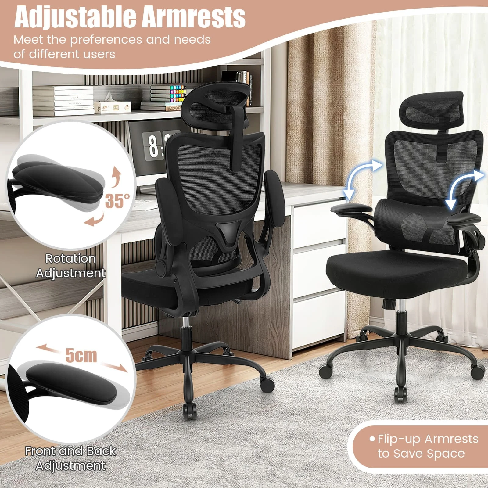 β‘Quick viewErgonomic Office Chair with Lumbar Support, Home Office Desk Computer Chairs Adjustable Headrest and Flip-up Armrests53.41 GBPGBP 99.27Hotβ β β β β β 4.6