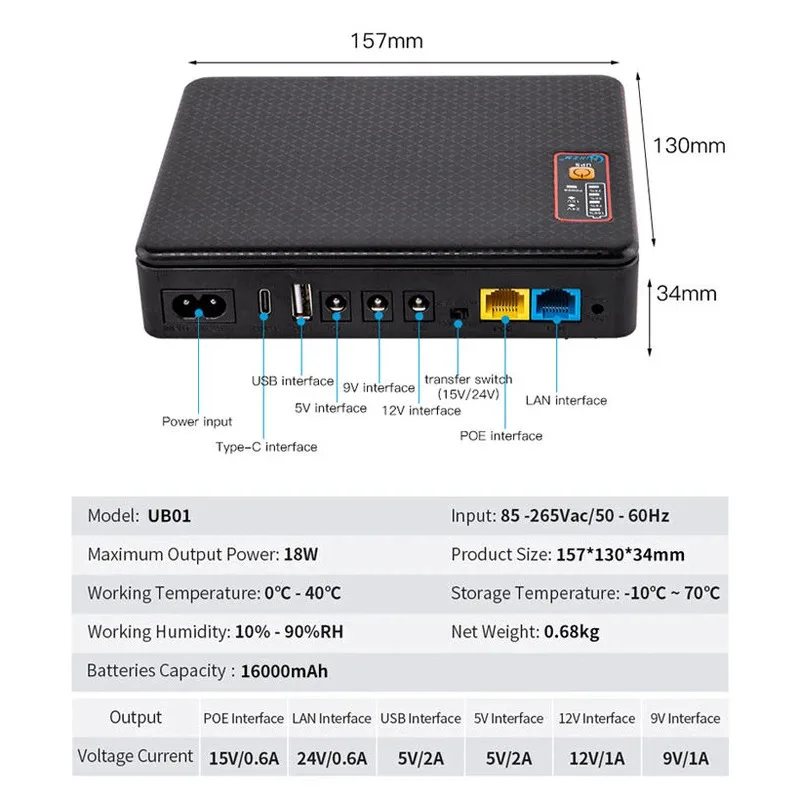 ↑Home Mini UPS Small 5v 9v 12v Dc POE Modem Lithium Battery Bank Uninterruptible Power Supply Companies for Wifi Router Optical - TopDealBox