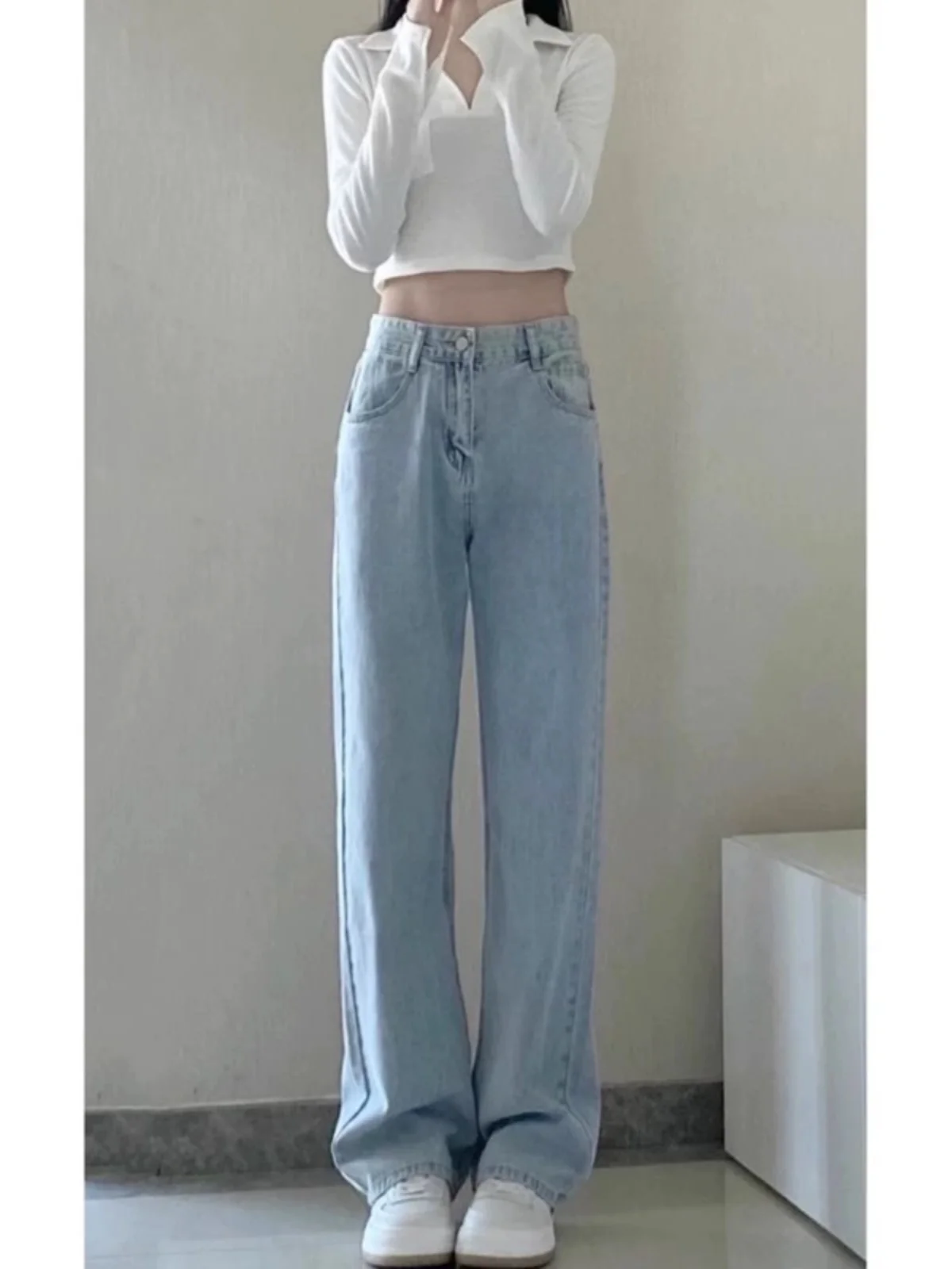 β‘Quick viewLight Wash High Waist Straight Leg Jeans Women's Spring New Loose Slimming Floor Length Wide Leg Pants Trousers12.49 GBPGBP 15.41Hotβ β β β β 4.3