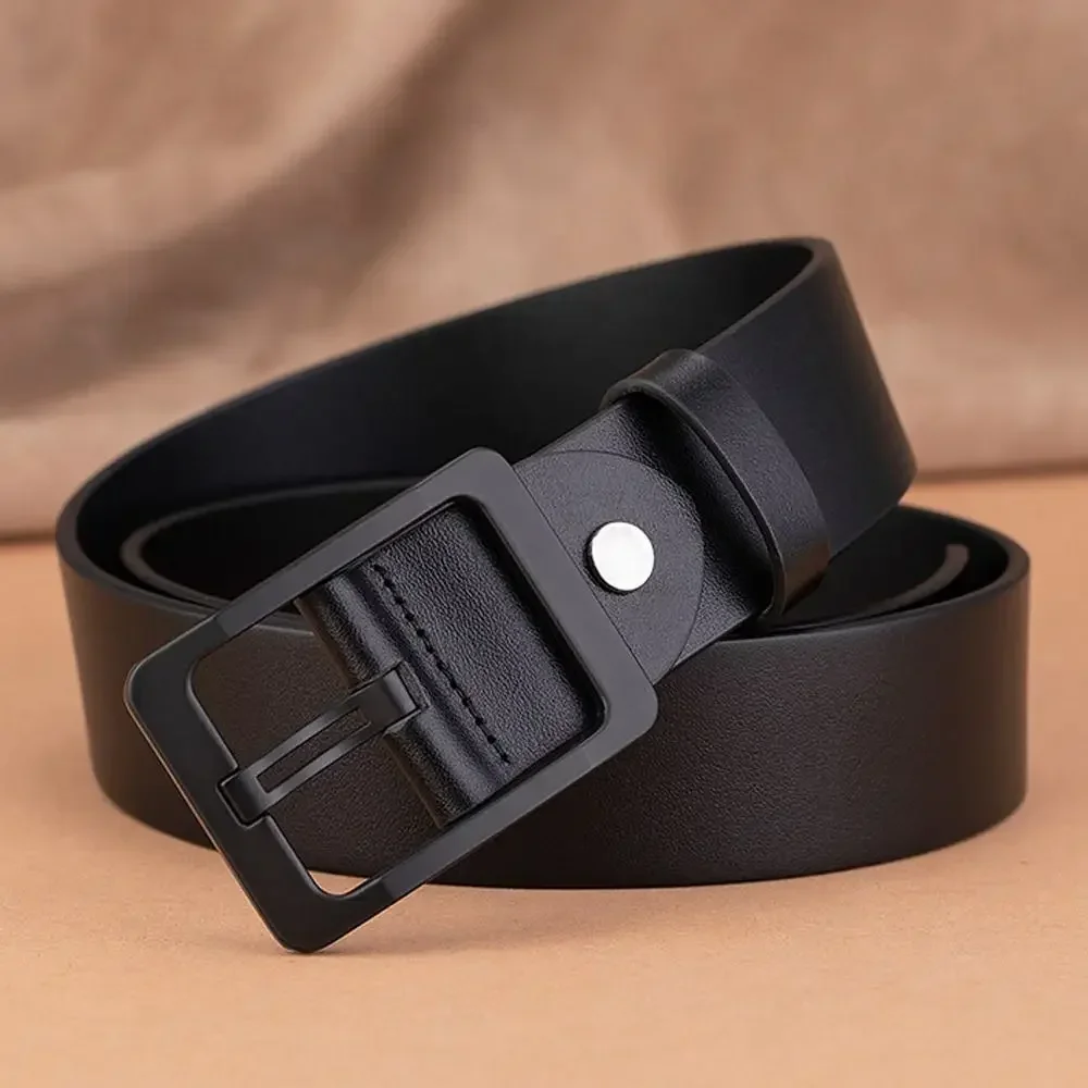 ↑Man Retro Leather Belt Pin Buckle Jeans Black Belt Business Casual Luxury Brand Vintage Strap Waistband Belts for Men - TopDealBox