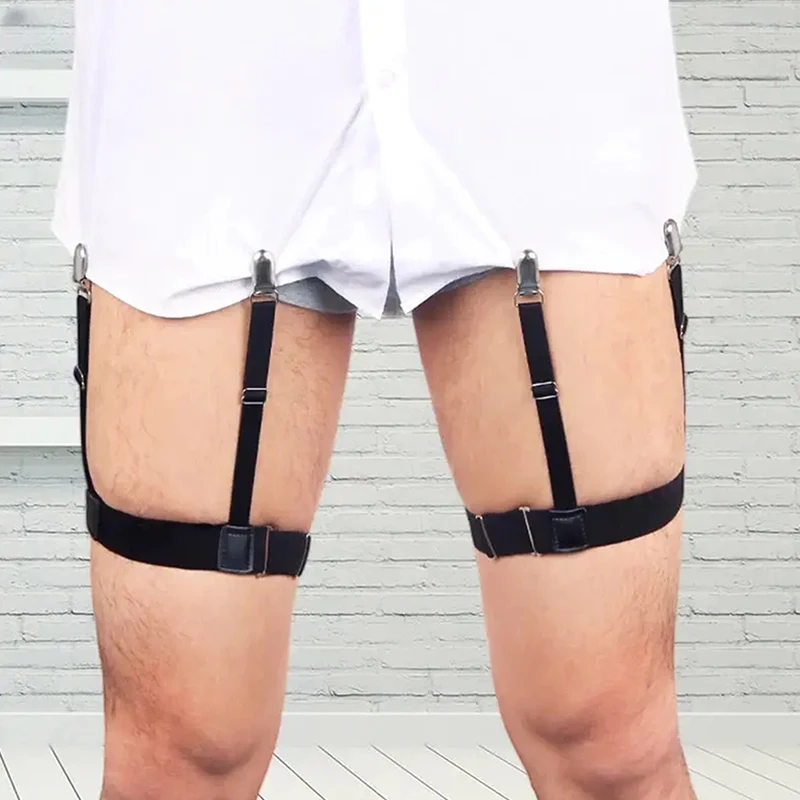 ↑Men Shirt Stay Belt With Non-slip Locking Clips Gentleman Leg Thigh Suspender Garters Strap Fashion Elastic UniformShirt Braces - TopDealBox