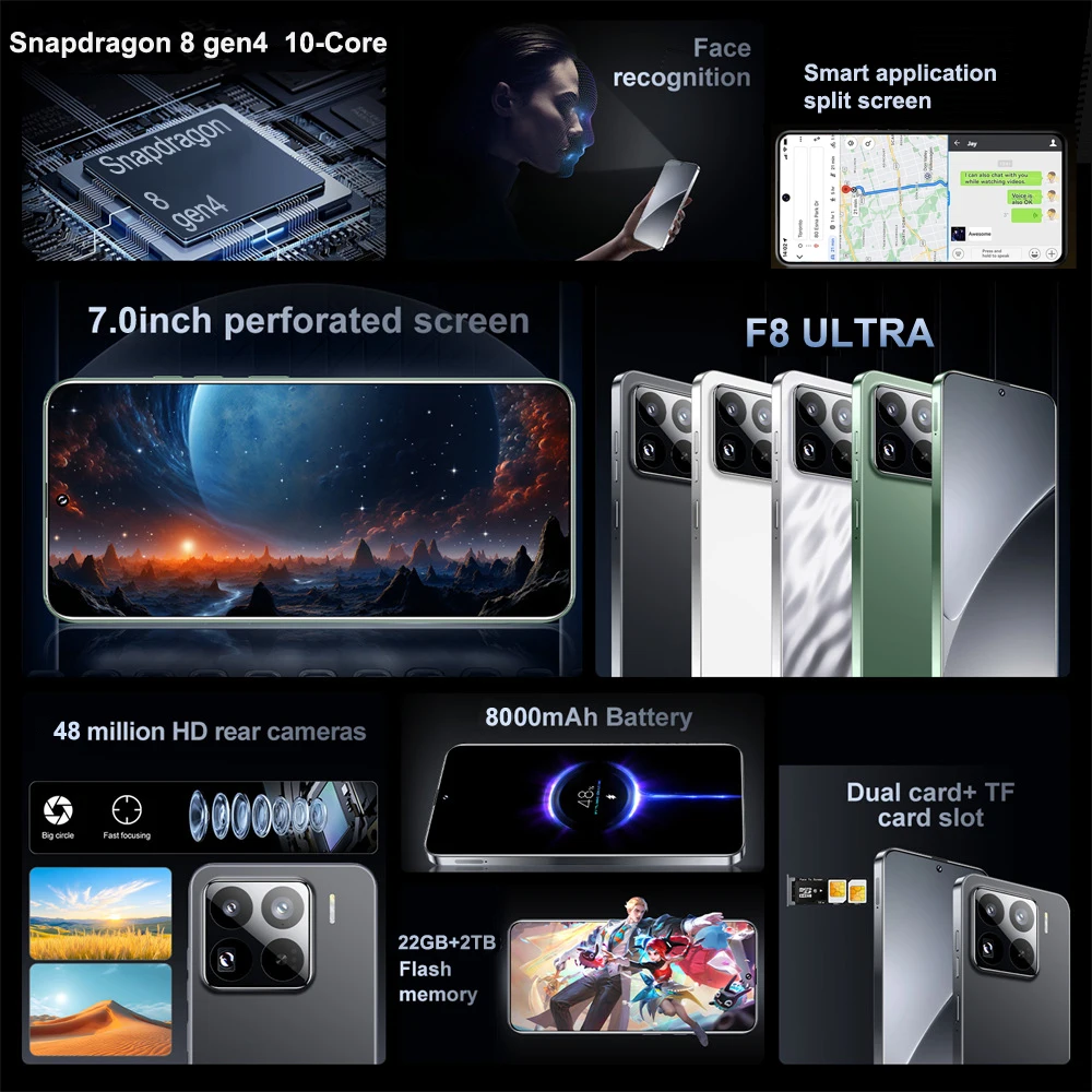 β‘Quick viewNew F7 Ultra Original Smartphone 7.3inch 5G Cell Phone 7800mAh Android 15 Dual SIM Card Cellphones Global Version Mobile Phones74.06 GBPGBP 423.83Hotβ β β β β 4.5