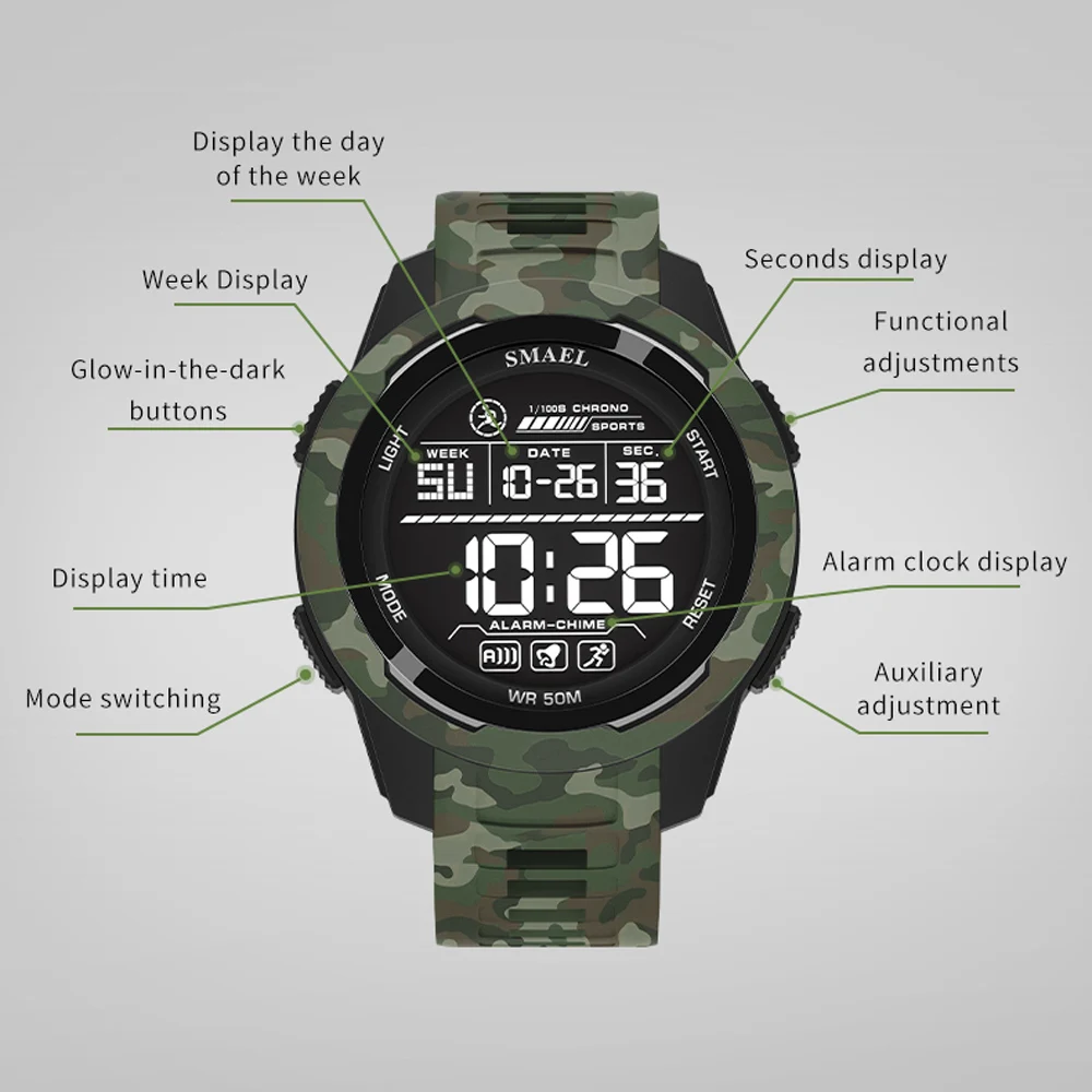 ↑New SMAEL 8105 Watches Camo Strap Military Sport Watch for Men Clock Fashion Digital Wristwatch Waterproof Shockproof Watches - TopDealBox