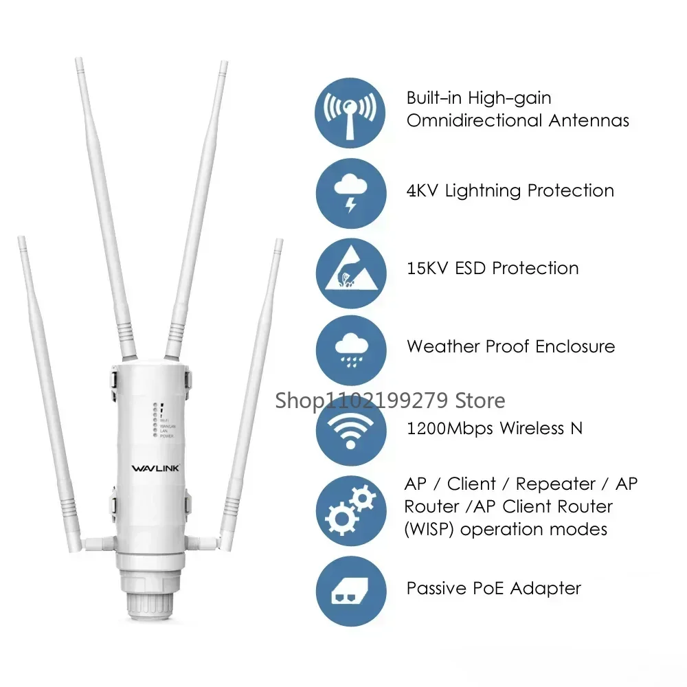 β‘Quick view2025 Wavlink High Power AC1200 Outdoor Waterproof Wireless WiFi Repeater AP/WiFi Router Dual Dand 5G Long Range Extender Antenna49.97 GBPGBP 480.00Hotβ β β β β 5.0
