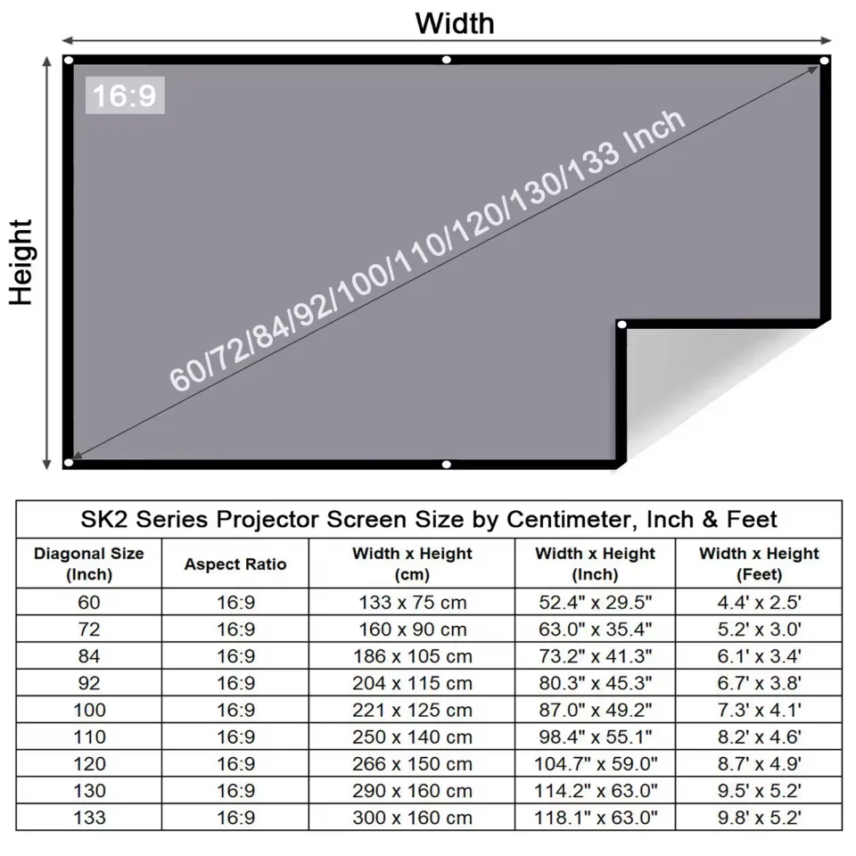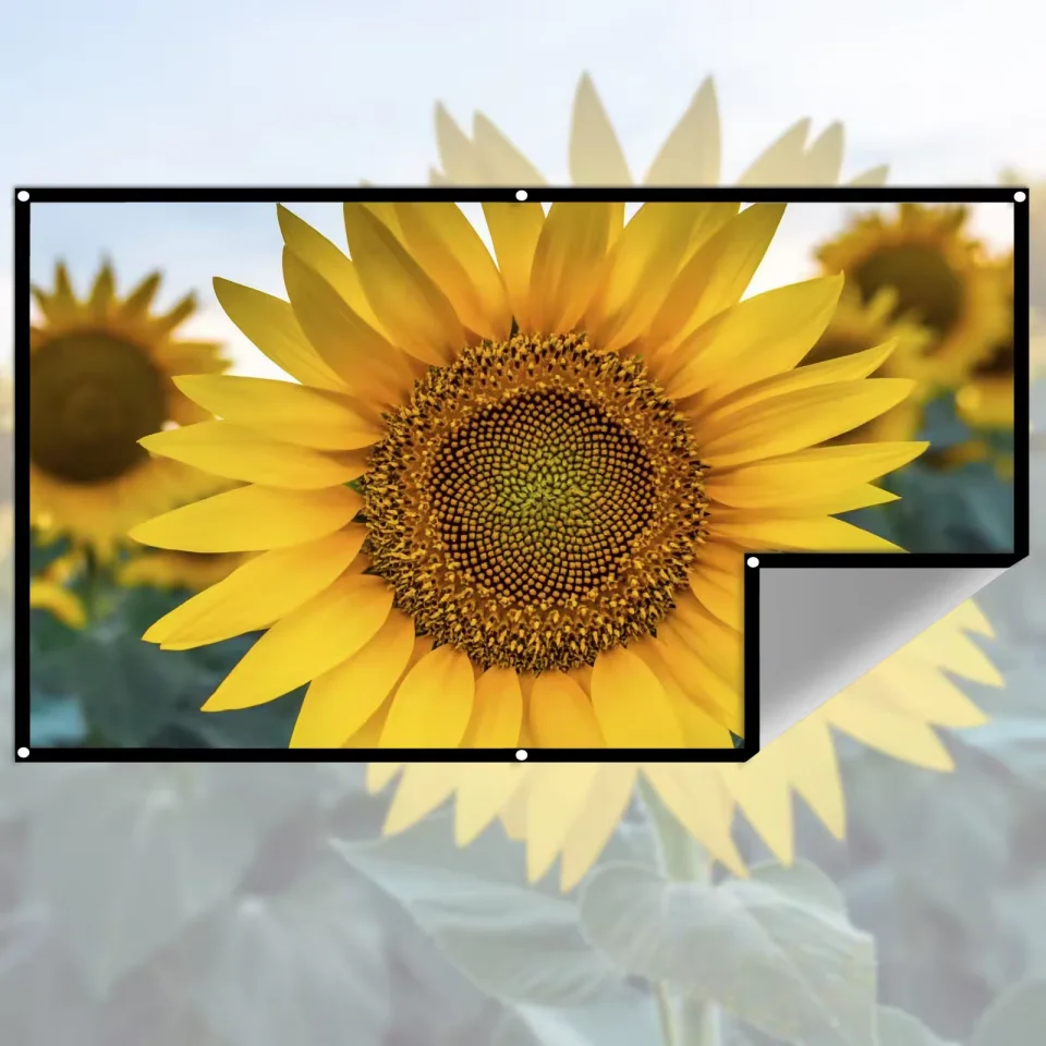 ↑High Brightness Portable Projection Screen Anti-Light Projector Curtain Metal Reflective Cloth Fabric with Black Border& Eyelets - TopDealBox