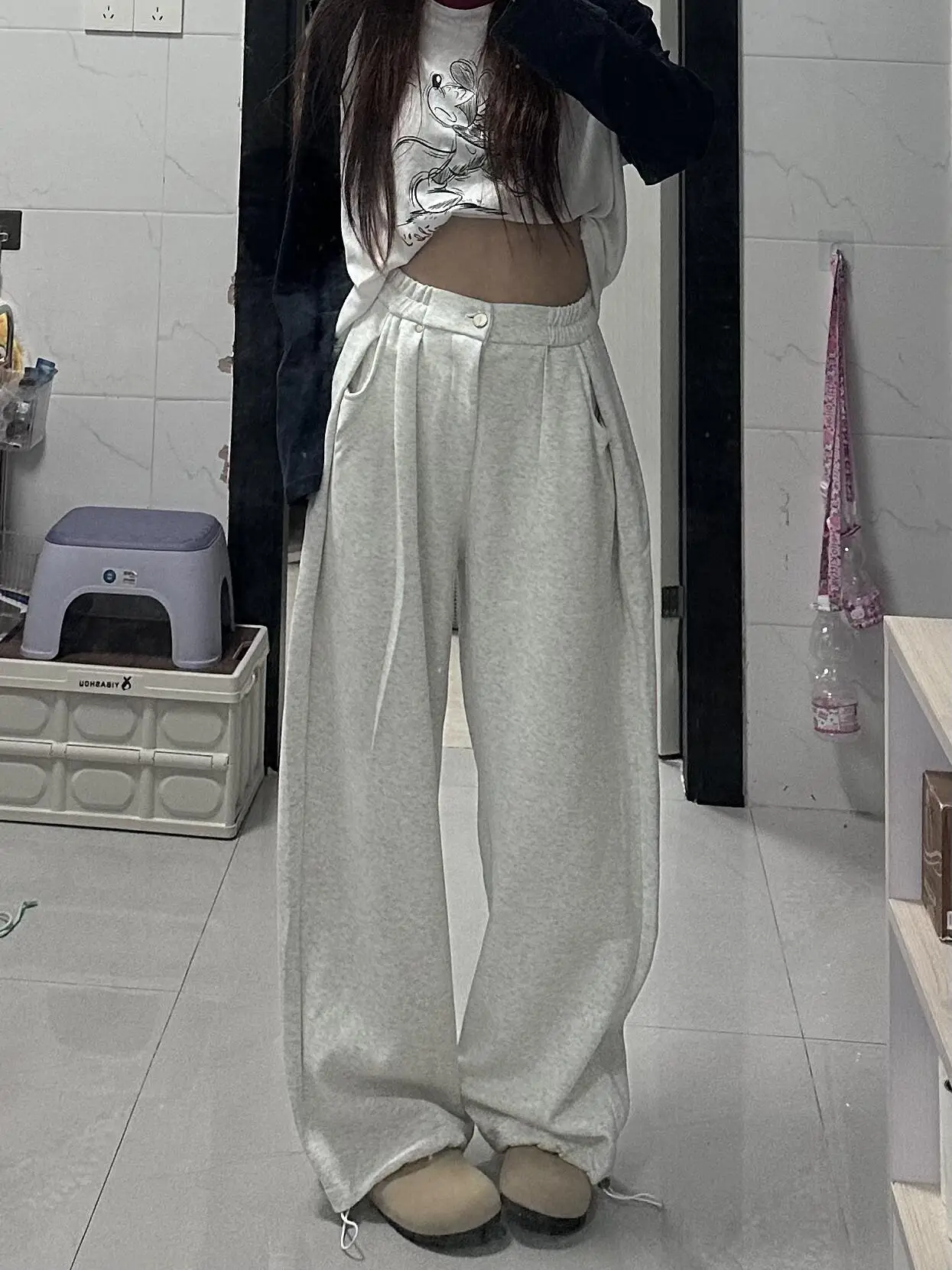 ↑Plus Size Retro American Sport Pants Women Autumn Winter Lazy Sle Casual Pants Draping Long Loose Wide Leg Pants Sweatpants - TopDealBox