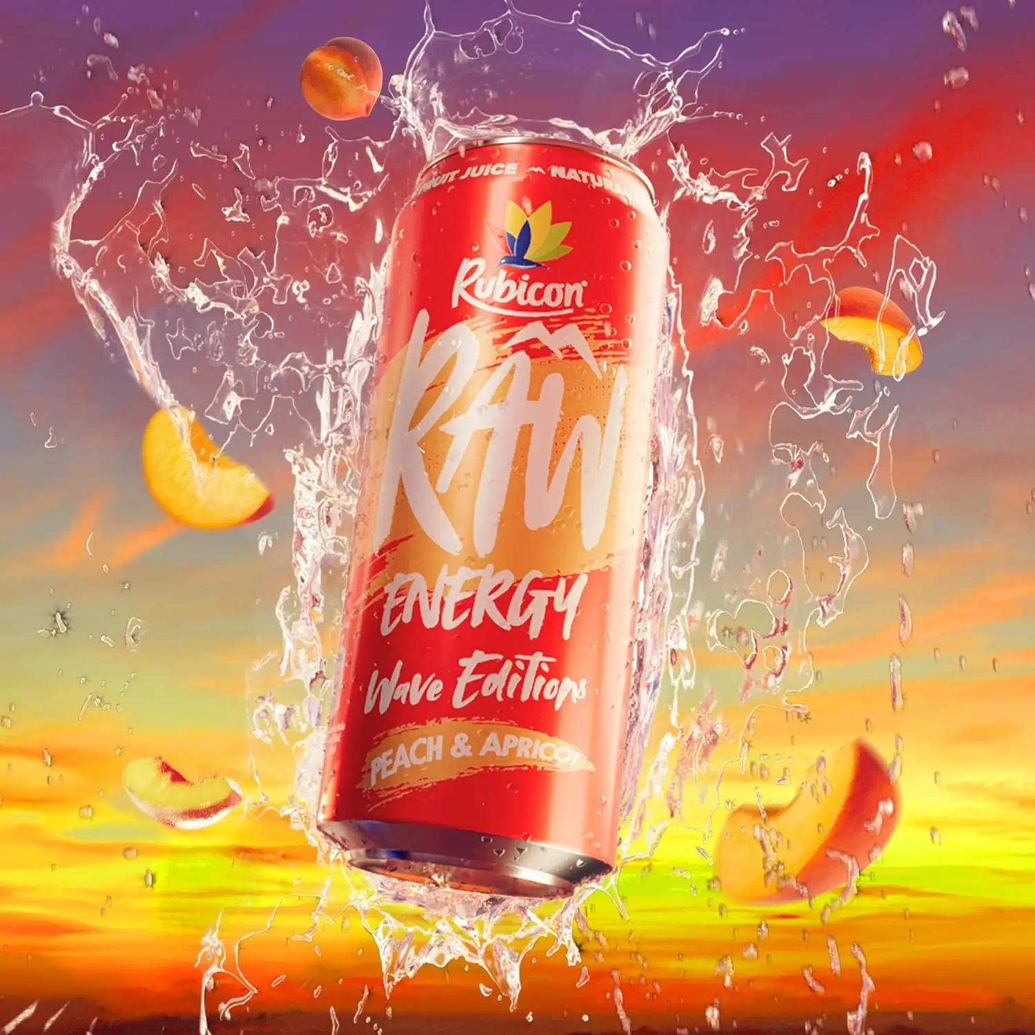 ↑Rubicon Raw Energy Wave Editions Peach & Apricot Pack of 12 x 500ml - TopDealBox