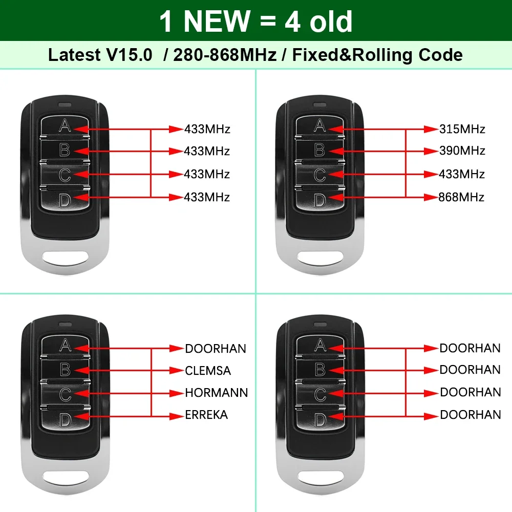 β‘Quick viewUniversal Multifrequency 280 to 868 Mhz 433.92MHz Remote Control Garage Command Fixed Rolling Code Gate Keychain Clone4.69 GBPGBP 89.05Hotβ β β β β β 4.9