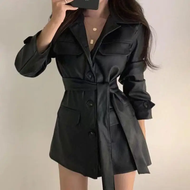 β‘Quick viewBlack PU Leather Jacket Spring Autumn High-End Loose Design Korean Sle Casual Outerwear Long Sleeve V-Neck Mid-Length Coat17.69 GBPGBP 21.82Hot