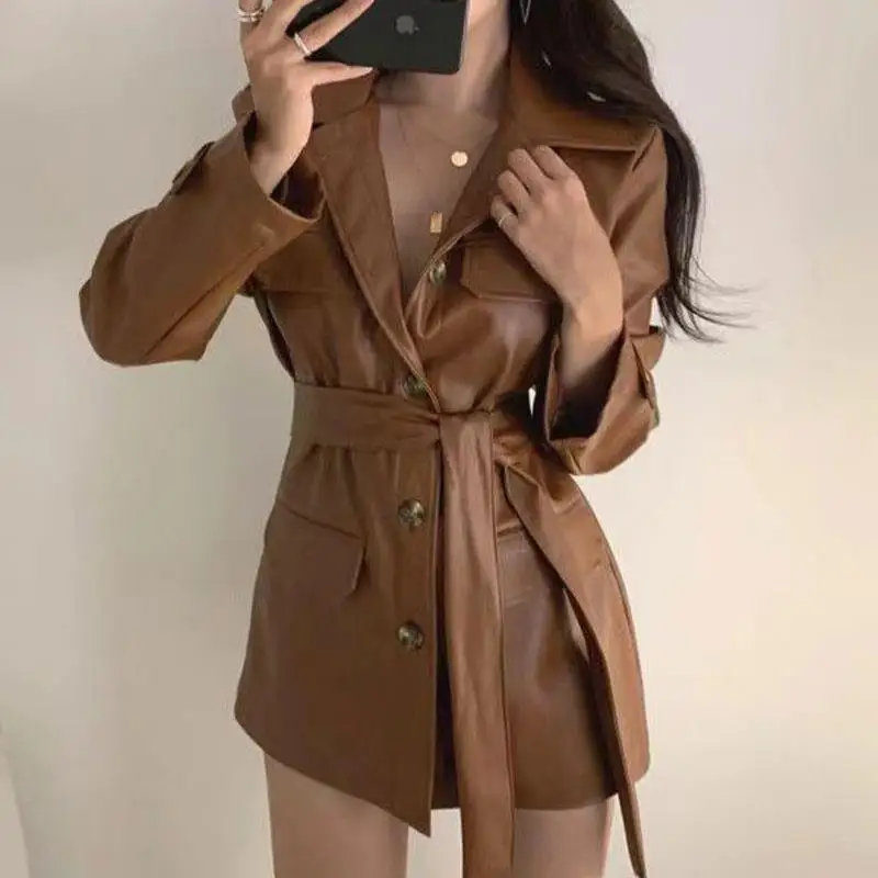 β‘Quick viewFashionable Genuine Leather Jacket for Women Waist-tied Loose Version Spring Autumn Black Brown Casual Stylish Aesthetic33.79 GBPGBP 59.52Hotβ β β β β β 4.7