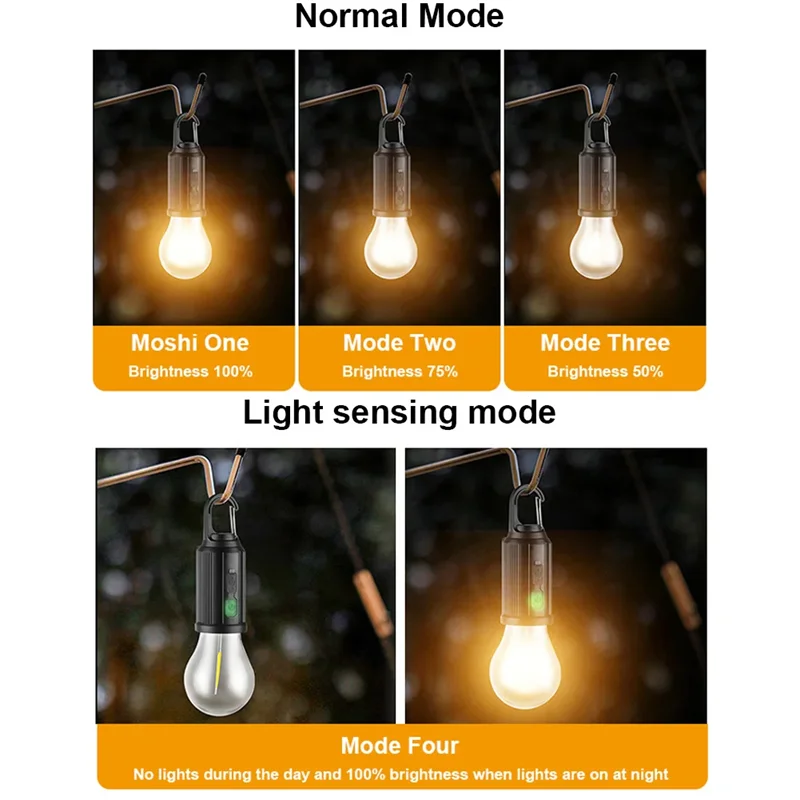 ↑Solar Camping Lamp Bulbs Outdoor USB Charging Solar Powerd Hanging Lights Portable Tent Light Waterproof for Camping BBQ Decor - TopDealBox