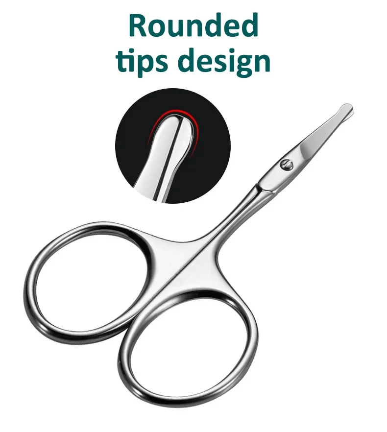 ↑Stainless steel round head small scissors eyebrow trimming tool scissors beard beauty scissors nose hair scissors - TopDealBox