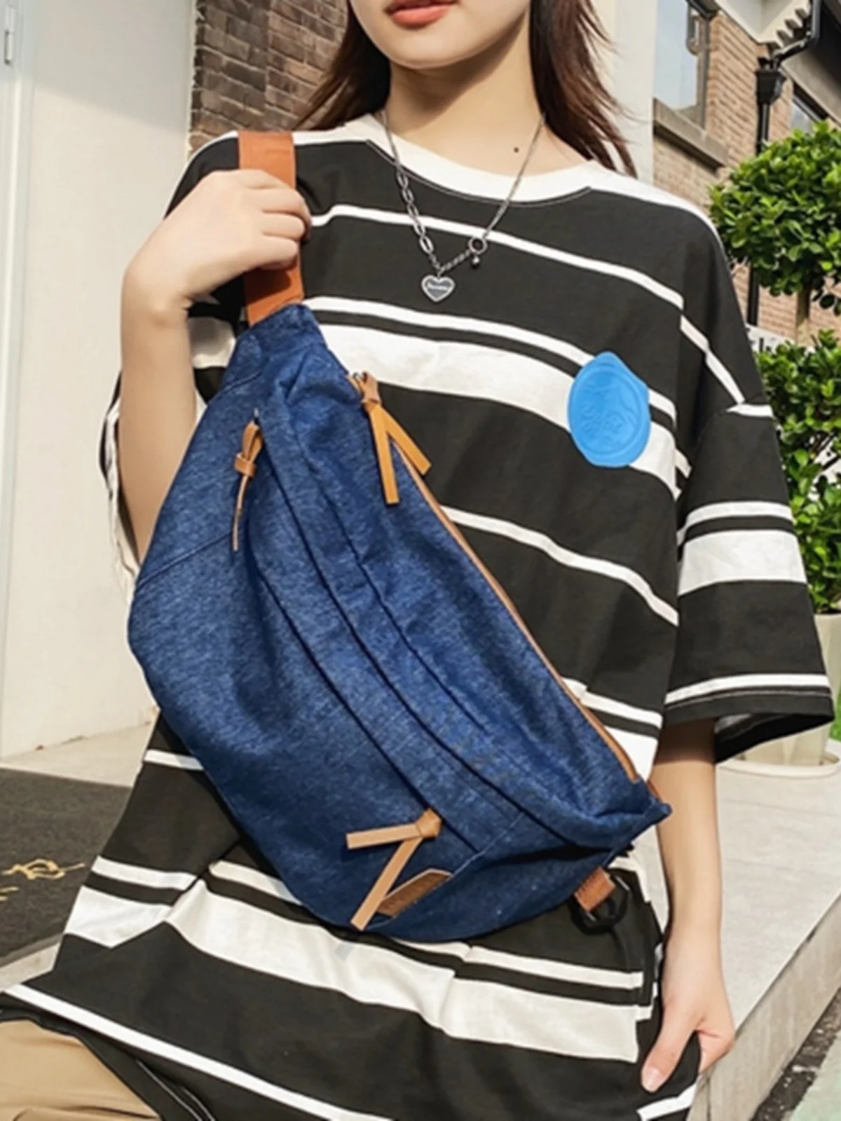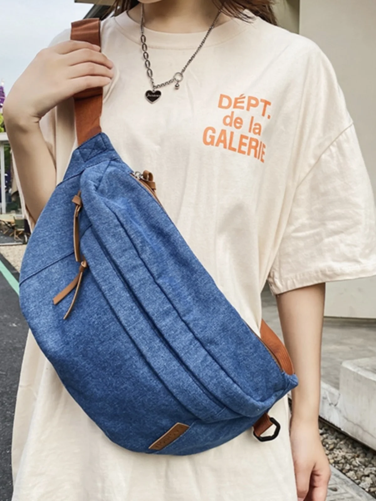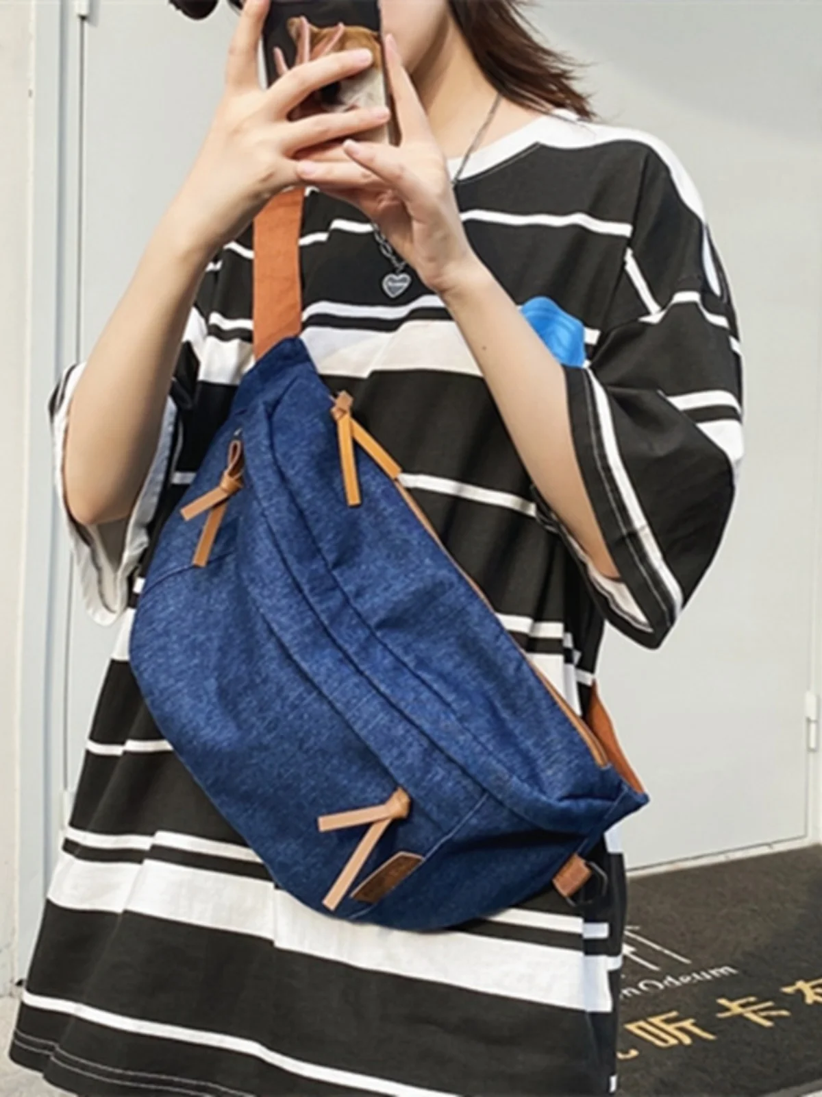 Trendy Street Sle Large Capaci Denim Crossbody Chest Bag for Men And Women Casual Pure Color Dumpling Shape Soft Bag - TopDealBox