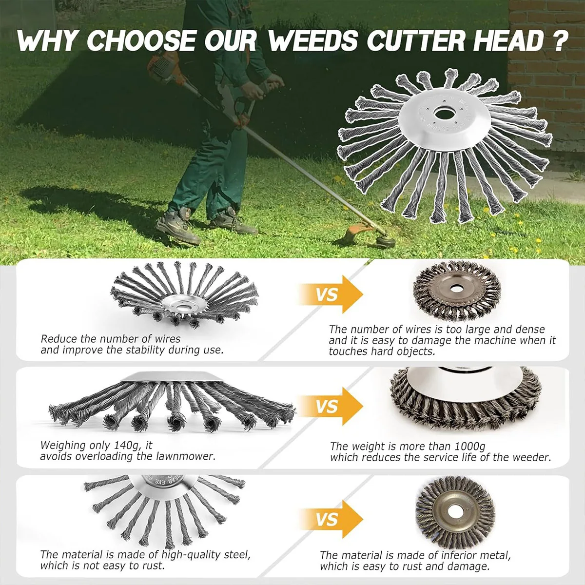 ↑Universal Upgrade 6/8 Inch Weed Brush Cutter Head Lawn Mower Grass Trimmer Head Steel Wire Wheel Brush Garden Trimmer Head - TopDealBox