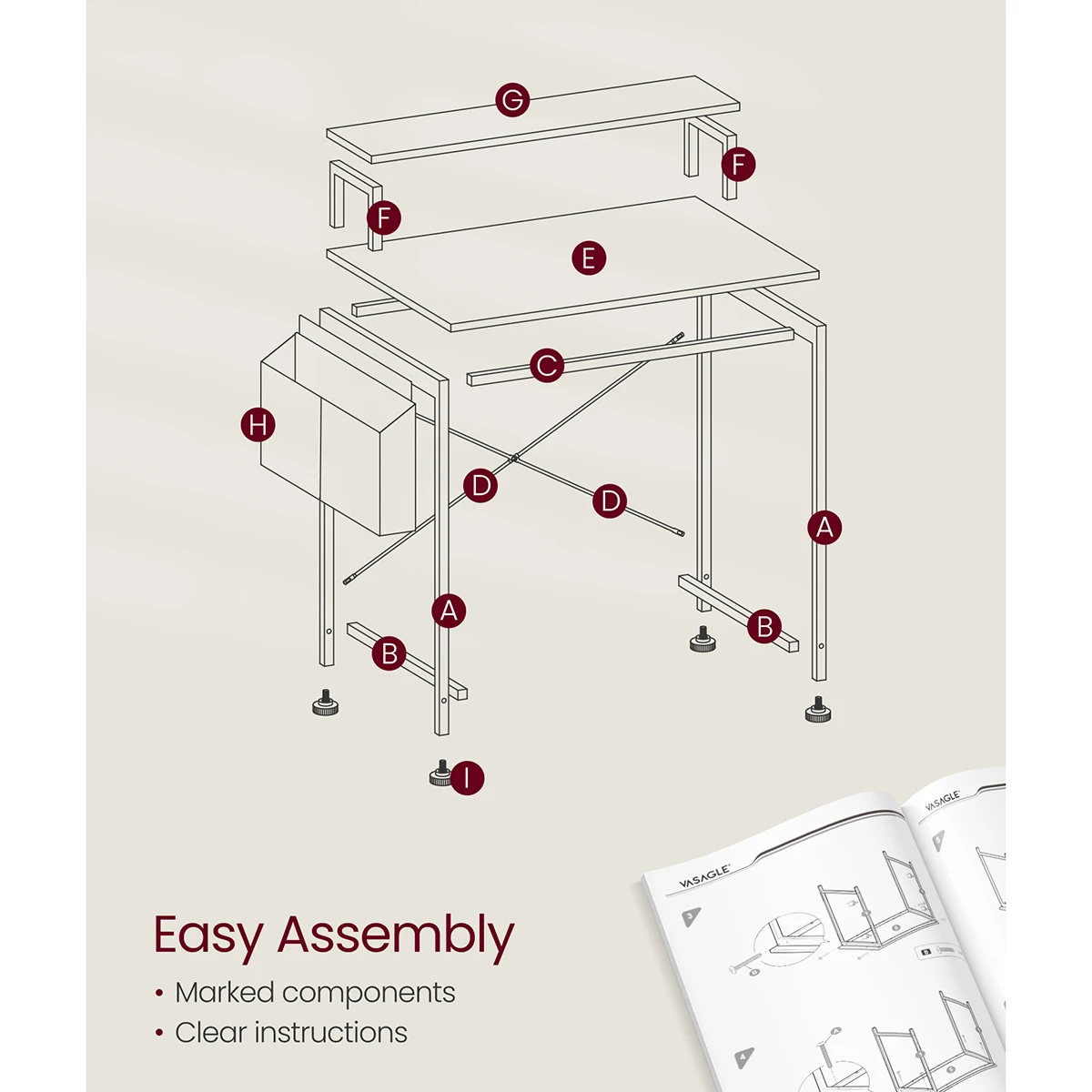 β‘Quick viewVASAGLE Computer Desk, Small Office Desk and Workstation, Work Desk for Home Office, Study, Bedroom, 50 x 100 x 76 cm27.76 GBPGBP 58.94Hotβ β β β β β 4.8