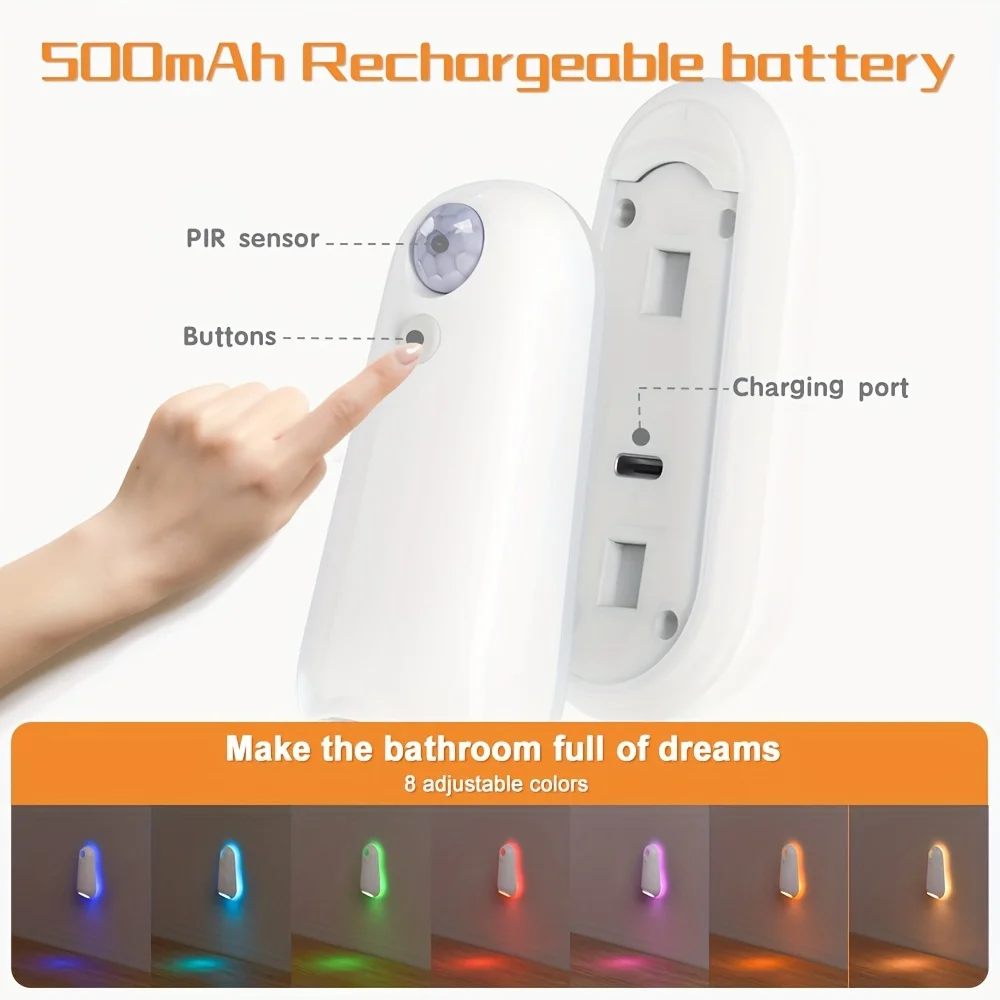 ↑Toilet Night Light Motion Sensor Light Toilet Bowl Light RGB color Changing For Bathroom Decoration LED Rechargeable LED Light - TopDealBox